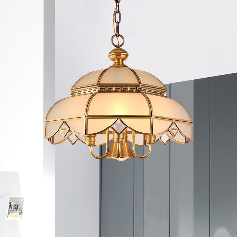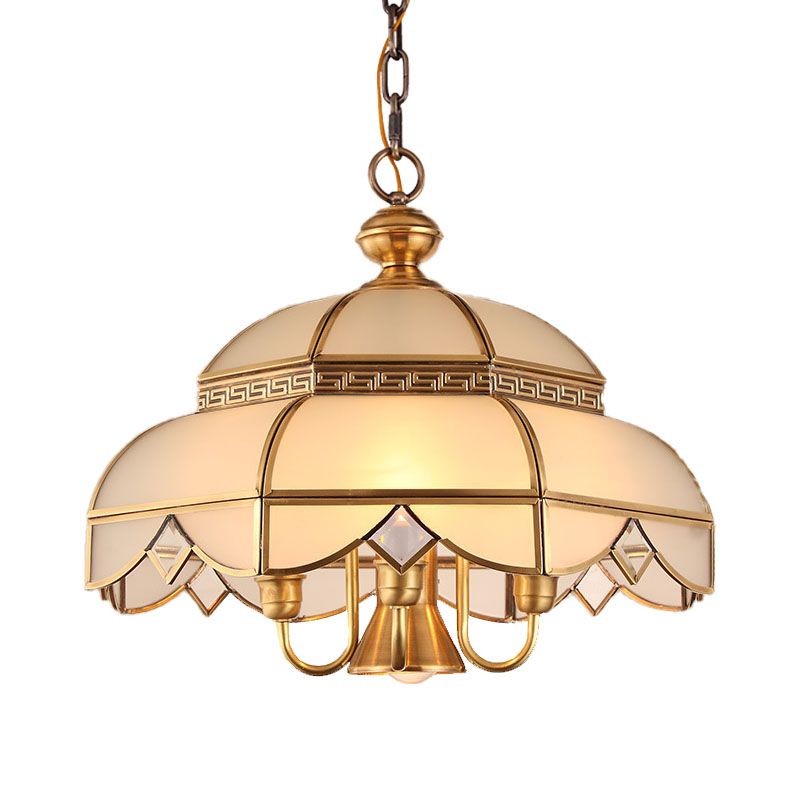 Brass 5 Heads Chandelier Lighting Colonialism Cream Glass Dome Pendant Ceiling Light for Dining Room