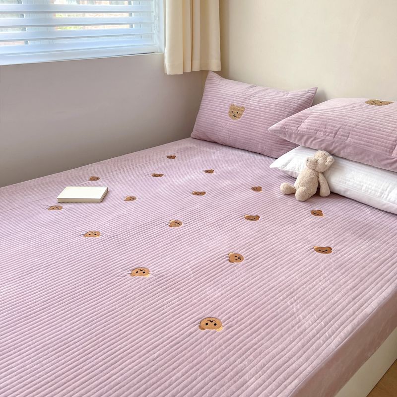 Breathable Fitted Sheet Flannel Soft Printing Fitted Sheet Set