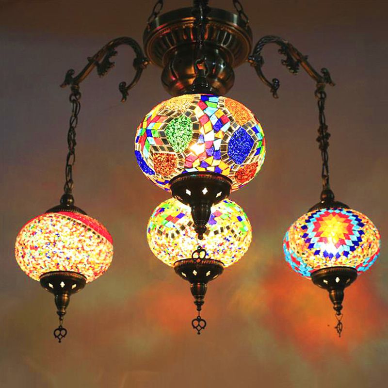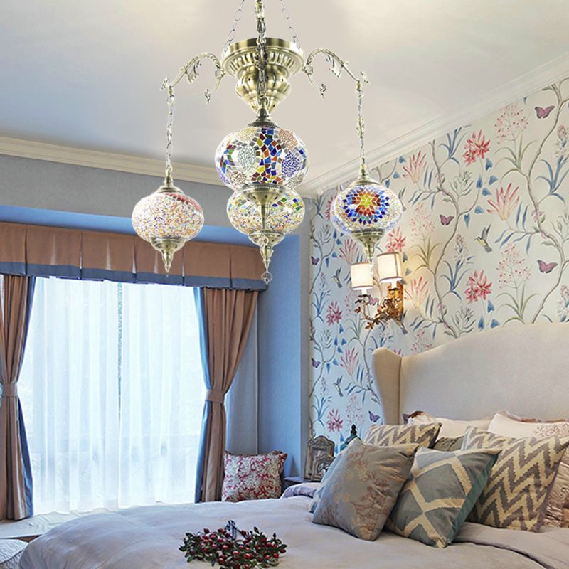 Bronze 4/6 Heads Pendant Chandelier Vintage Hand Cut Glass Oval Pendant Ceiling Light