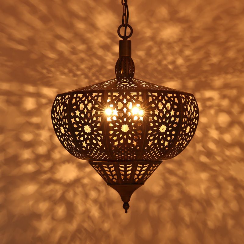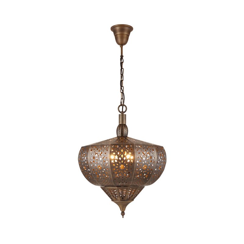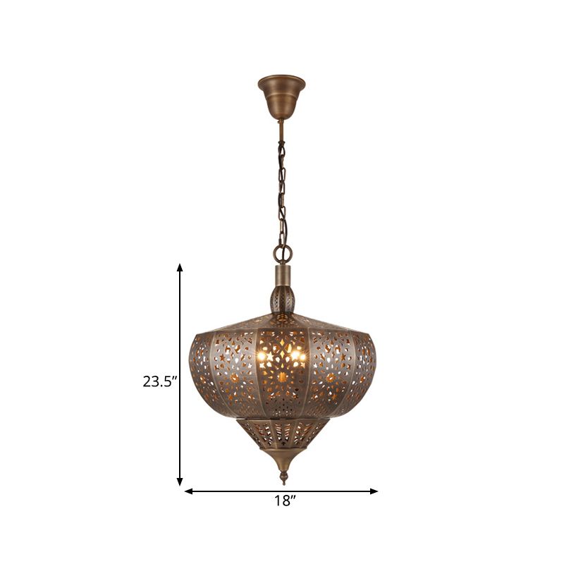 Bronze Cutout Suspension Lamp Vintage Metal 4 Heads Restaurant Chandelier Pendant Light