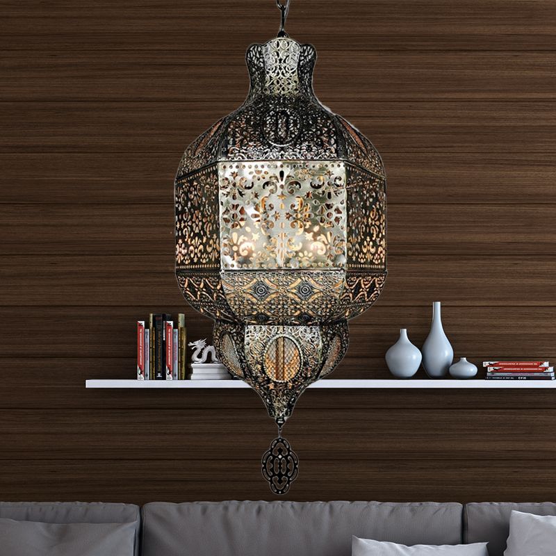 Bronze Etch Ceiling Pendant Light Art Deco Metal 3-Bulb Living Room Chandelier Lighting