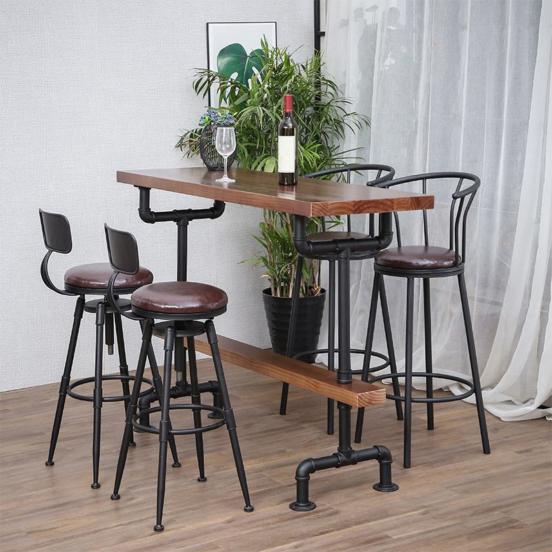 Brown Industrial Bar Table Pine Wood Milk Tea Shop Casual Bar Table