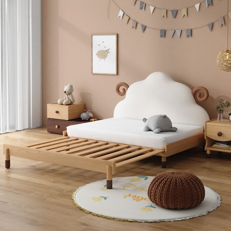 Brown Kids Bed Contemporary Solid Wood Daybed with Upholstered