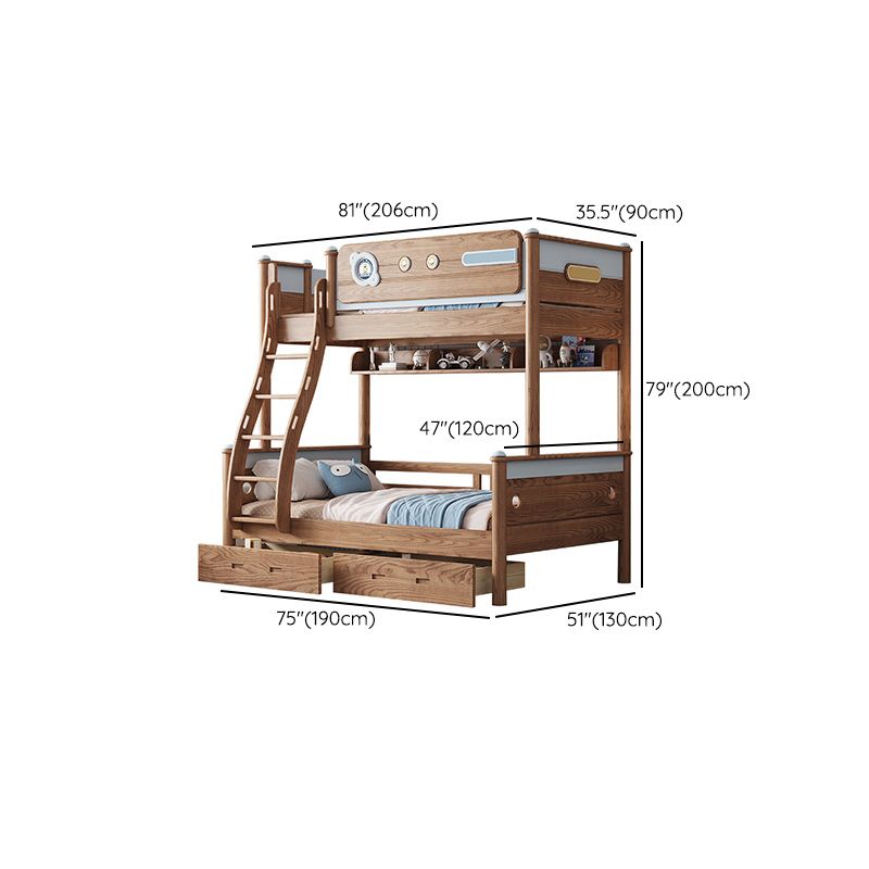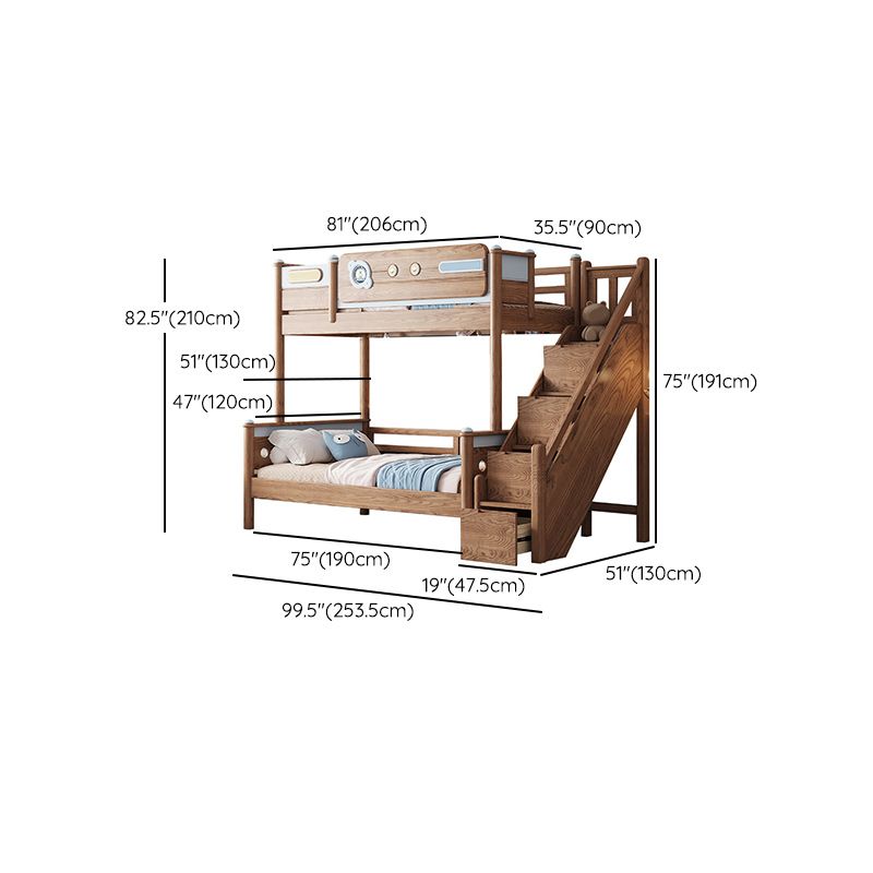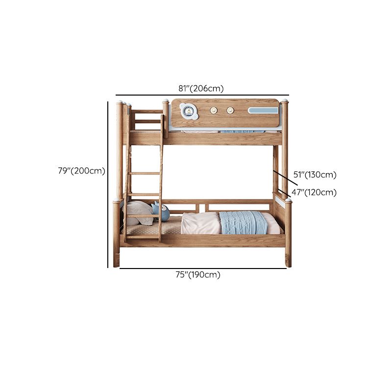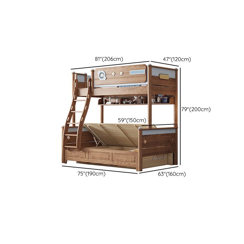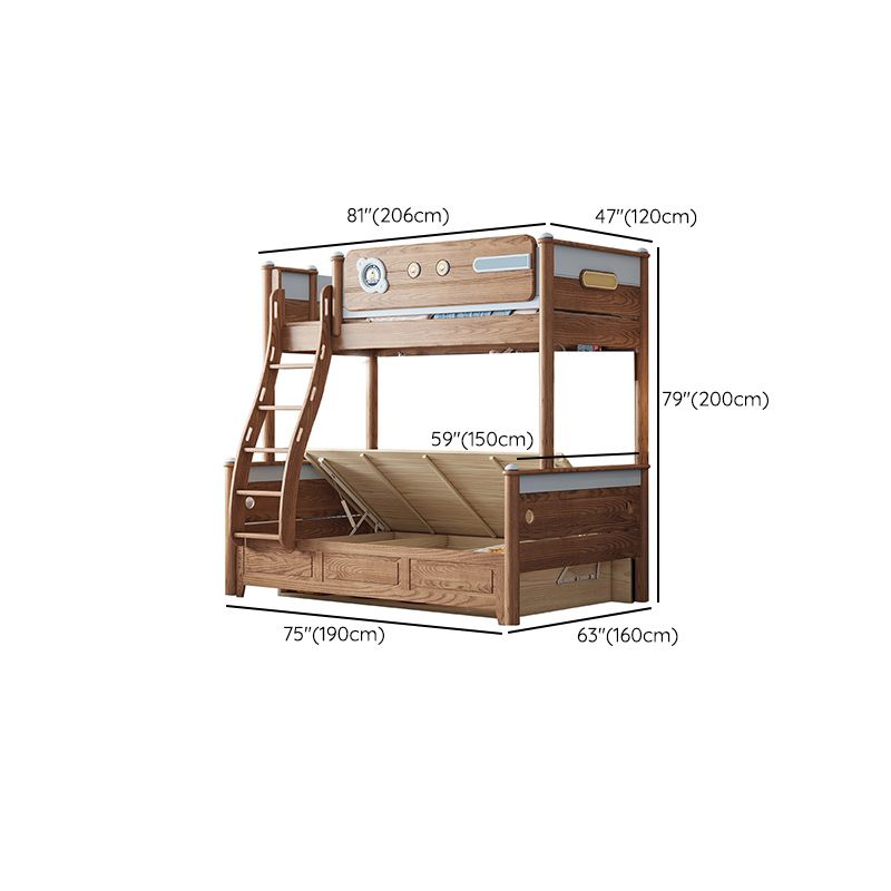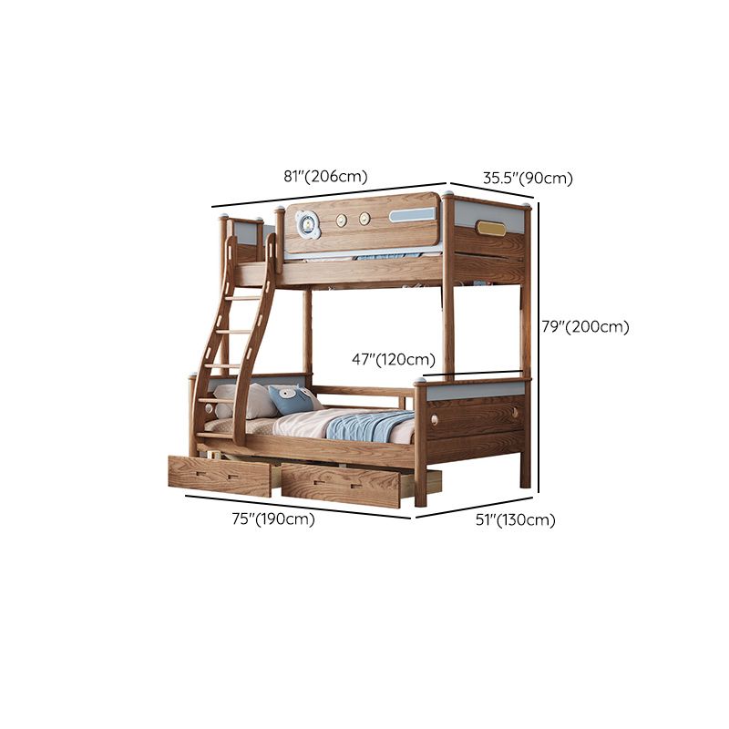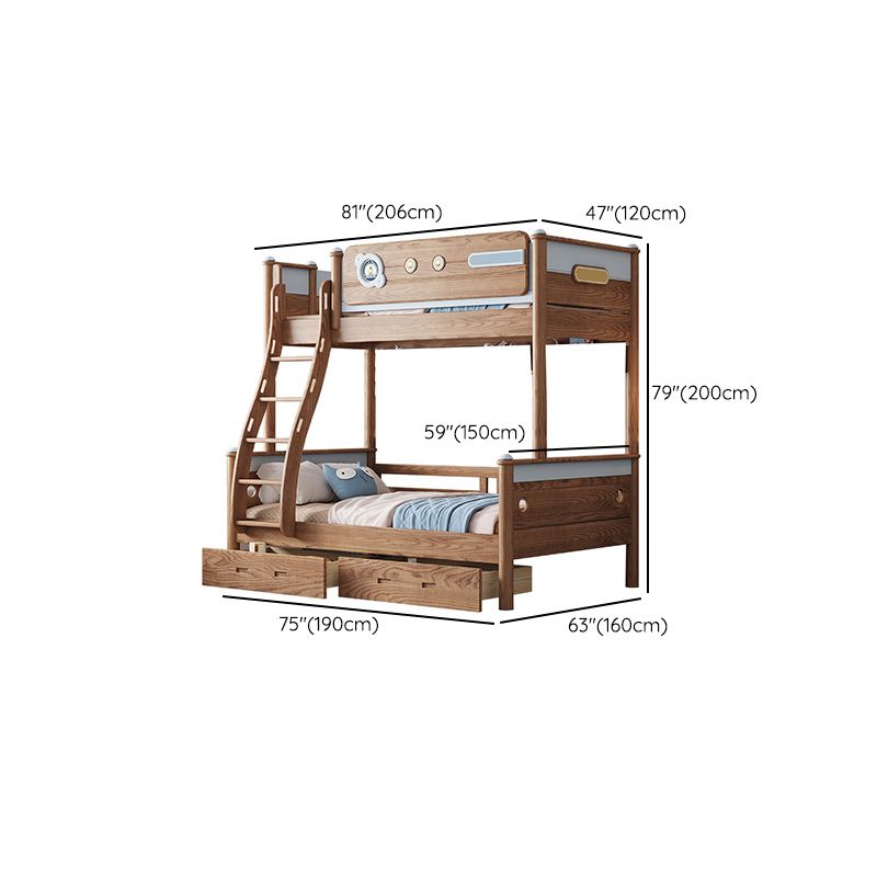 Brown Scandinavian Bunk Bed Solid Wood Standard Bunk Bed with Guardrail