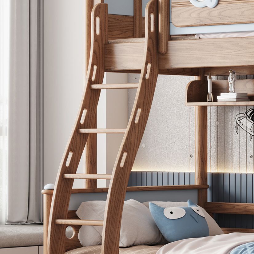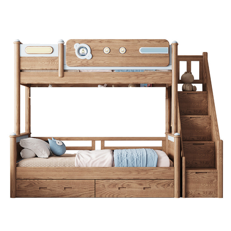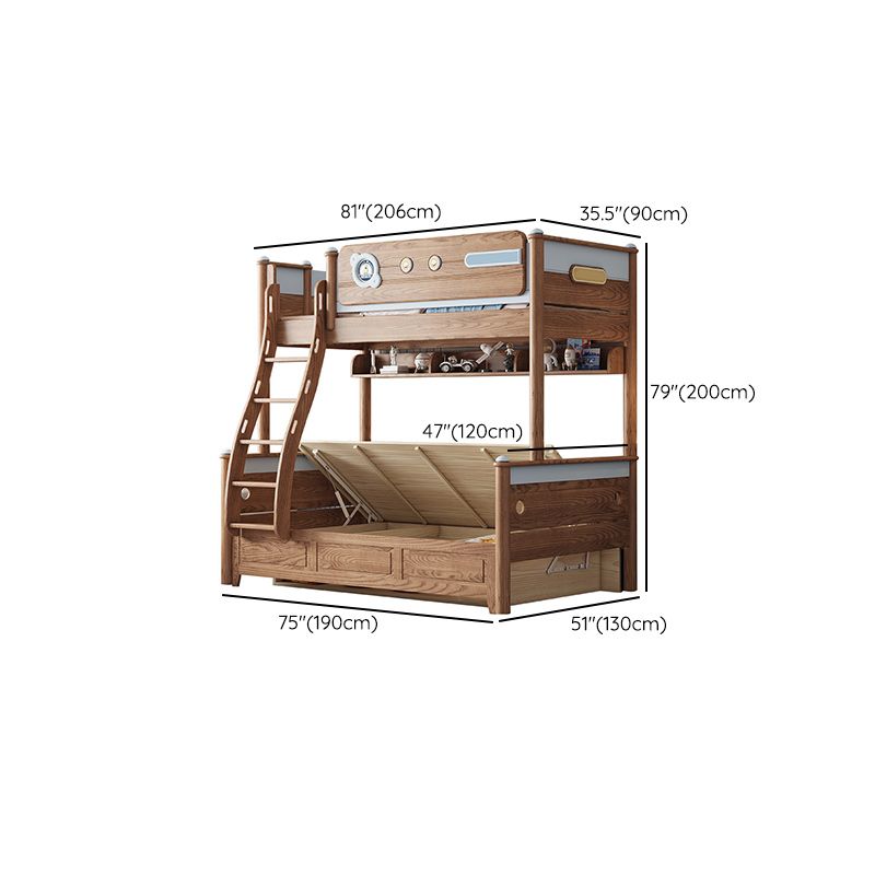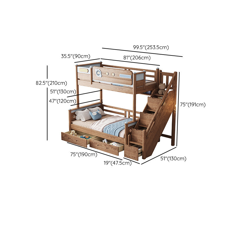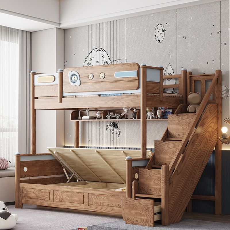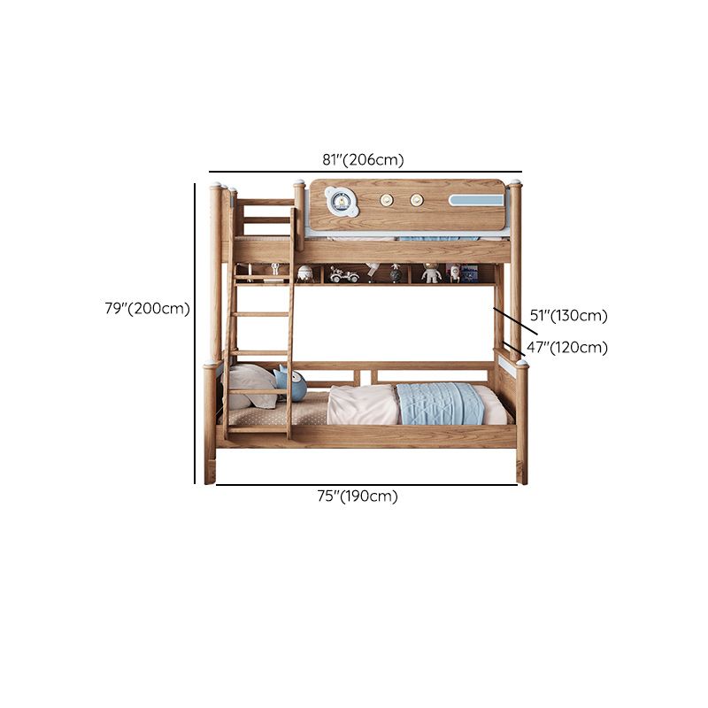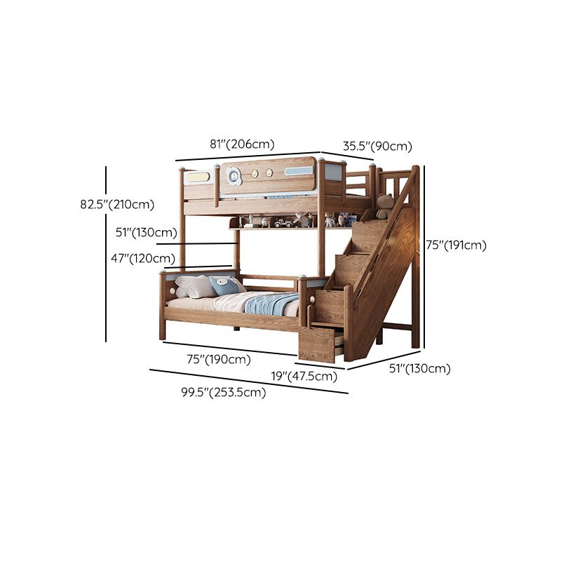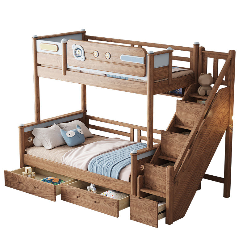 Brown Scandinavian Bunk Bed Solid Wood Standard Bunk Bed with Guardrail