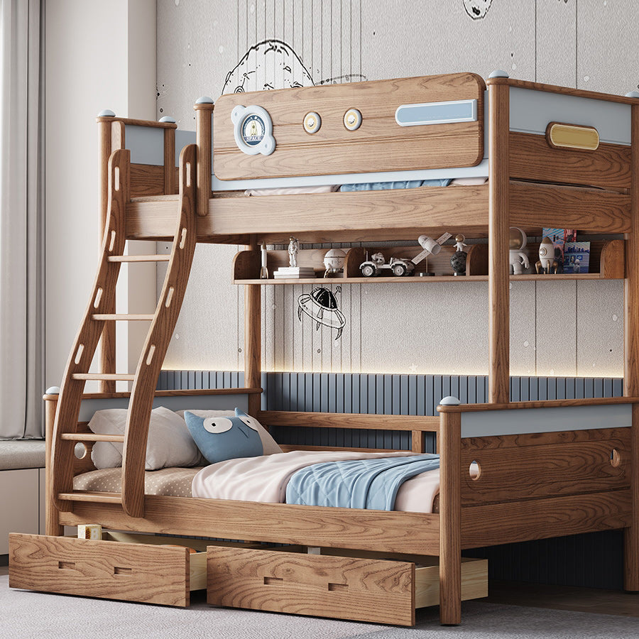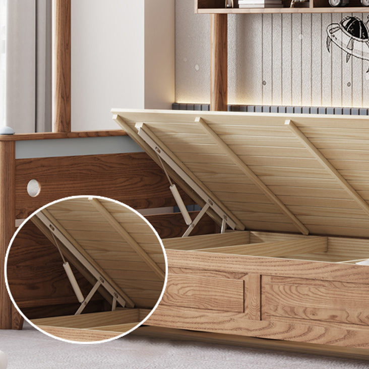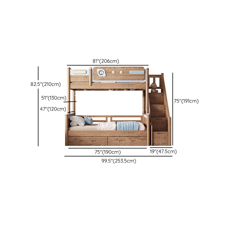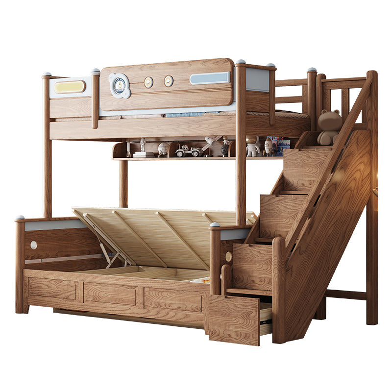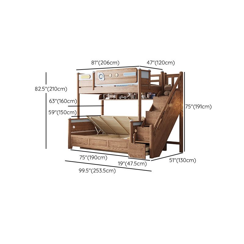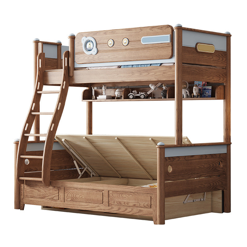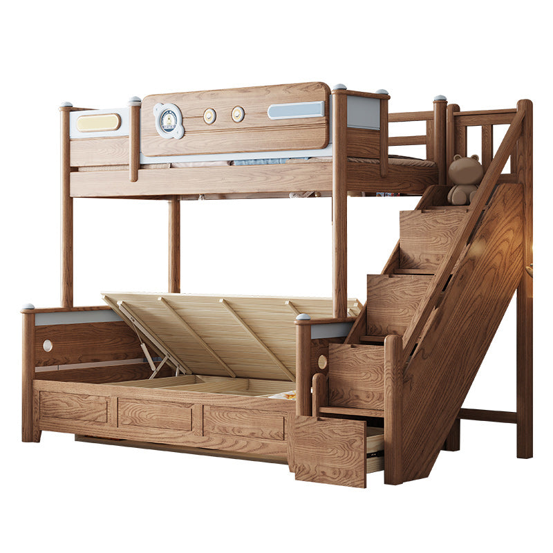 Brown Scandinavian Bunk Bed Solid Wood Standard Bunk Bed with Guardrail