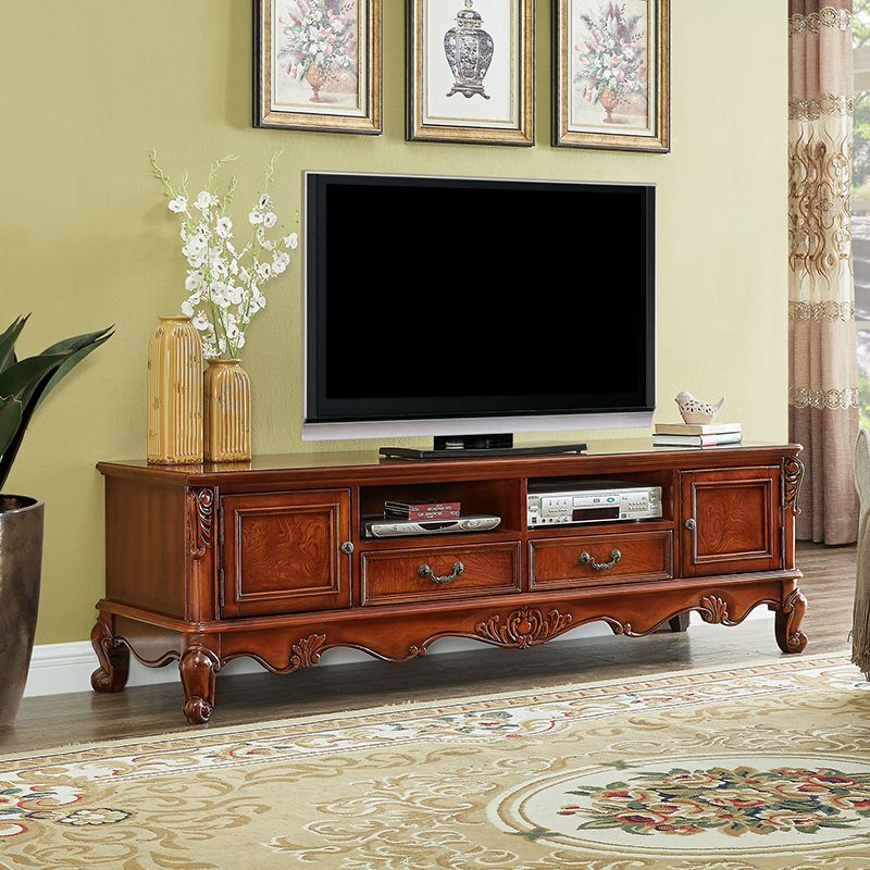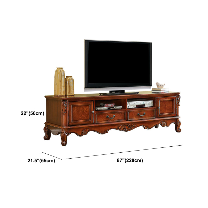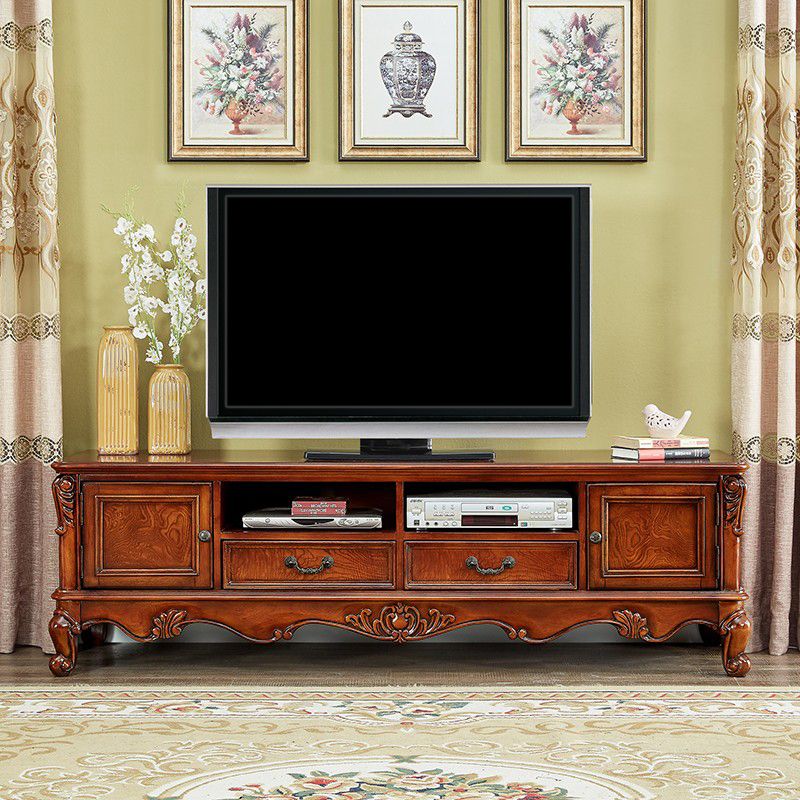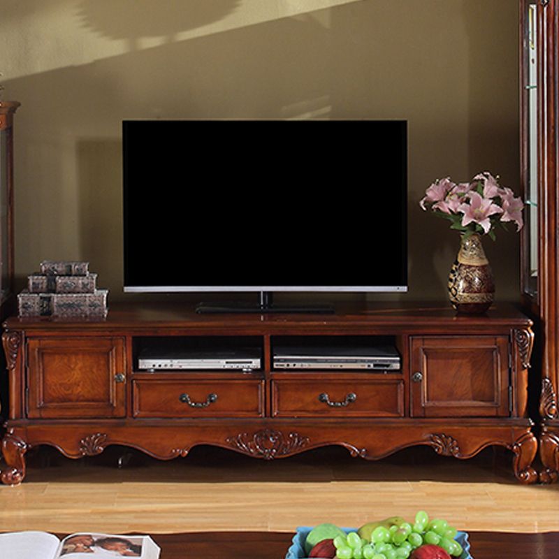 Brown Wooden TV Cabinet Traditional Style Home Living Room TV Stand Console with Drawers