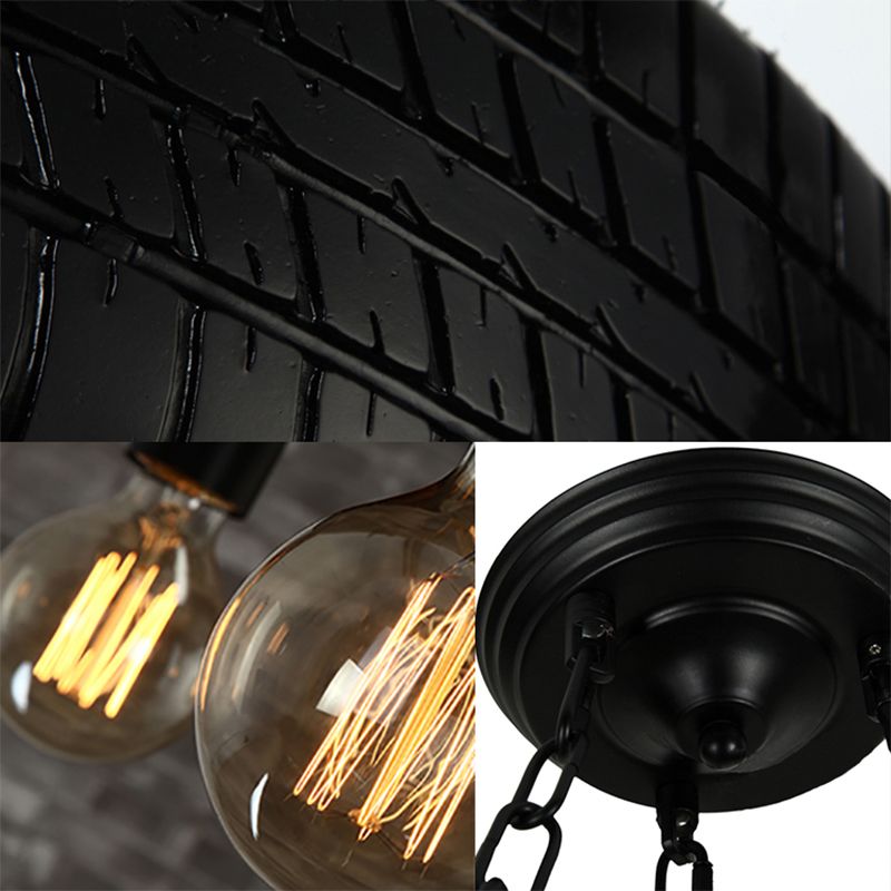Cafe Car Tire Pendant Lamp Rubber 6 Lights Vintage Stylish Chandelier in Black
