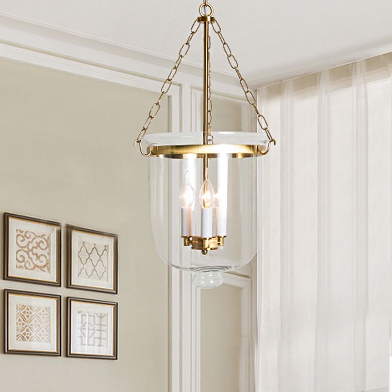 Candelabra Clear Glass Pendant Chandelier Colonial 3 Bulbs Bedroom Hanging Light