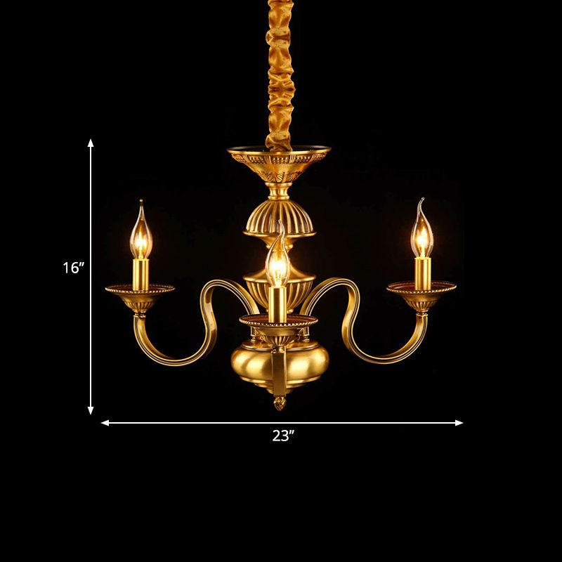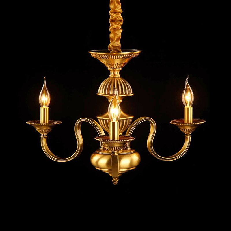 Candle Metal Pendant Chandelier Colonialism 3/5/6 Lights Dining Room Suspended Lighting Fixture in Brass