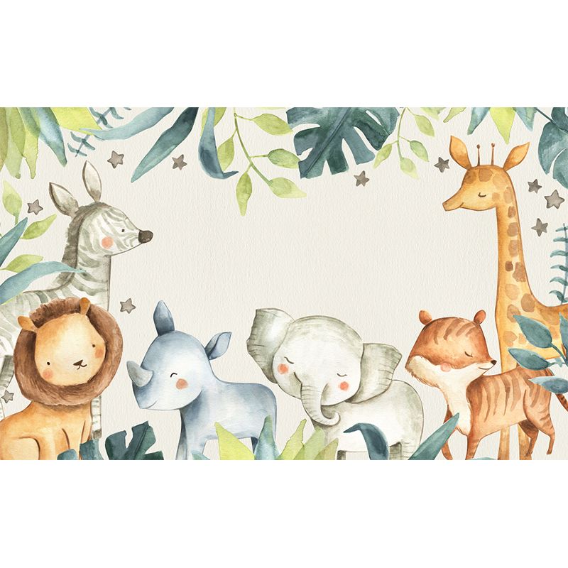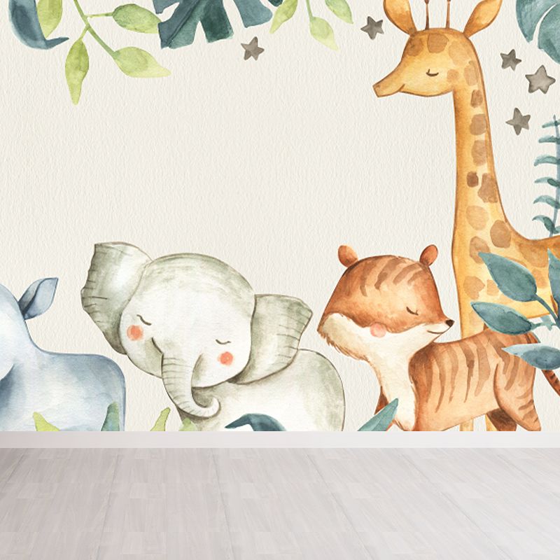 Cartoon Animals Wallpaper Mural for Baby Room Personalized Size Wall Decor in Beige