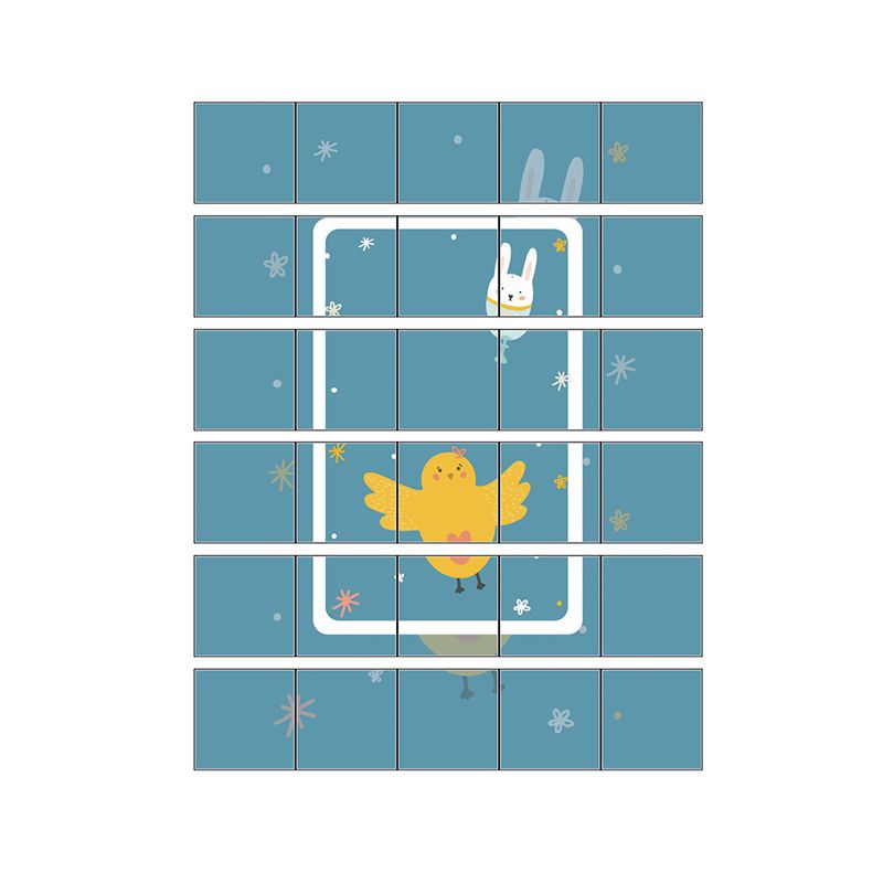 Cartoon Animals Wallpaper Panel Set PVC Self Adhesive Blue Wall Decor for Kitchen