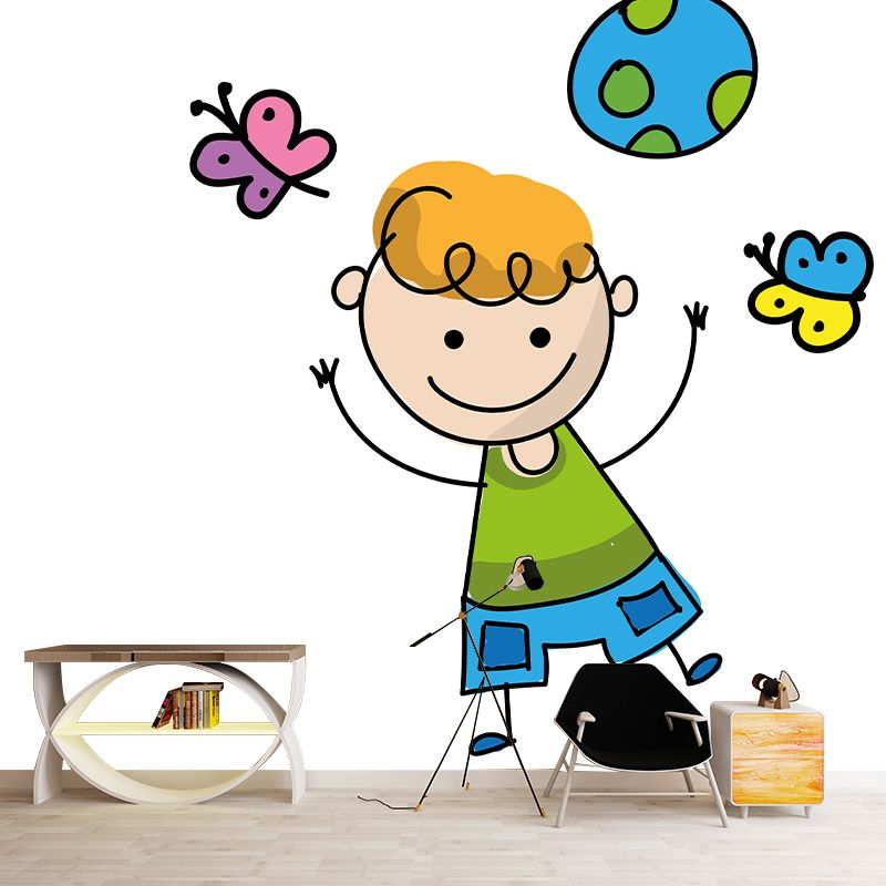 Cartoon Character Mural Wallpaper Mildew Resistant for Children's Bedroom