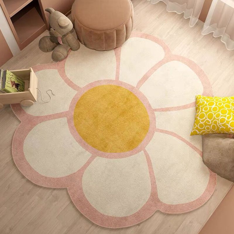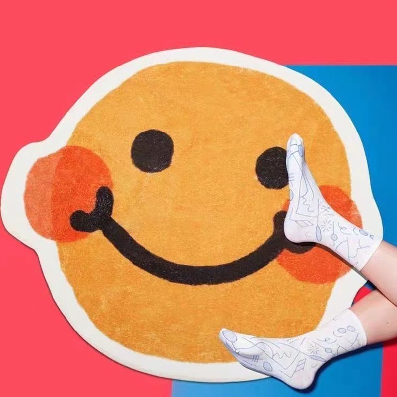 Casual Smiling Face Indoor Rug Polyester Orange Rug Washable Rug for Drawing Room