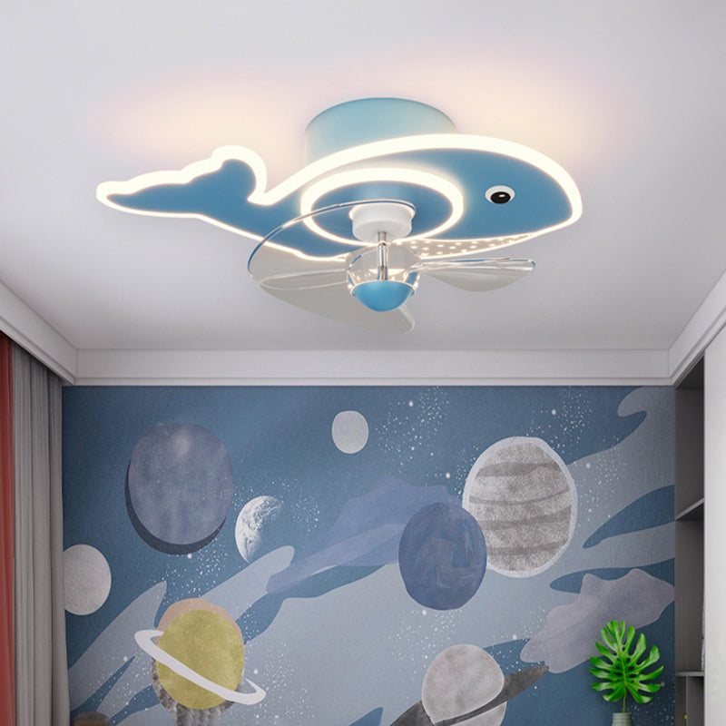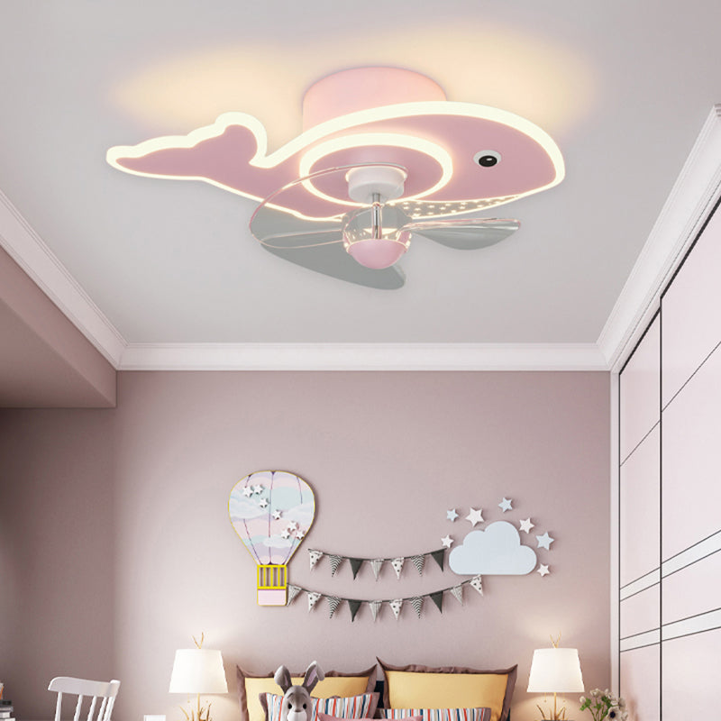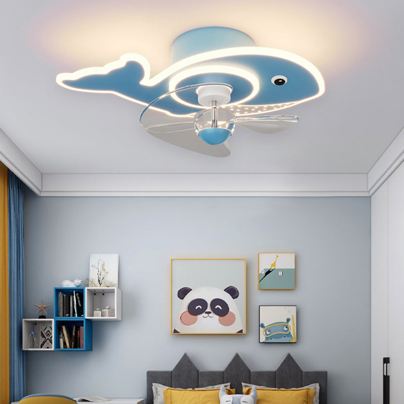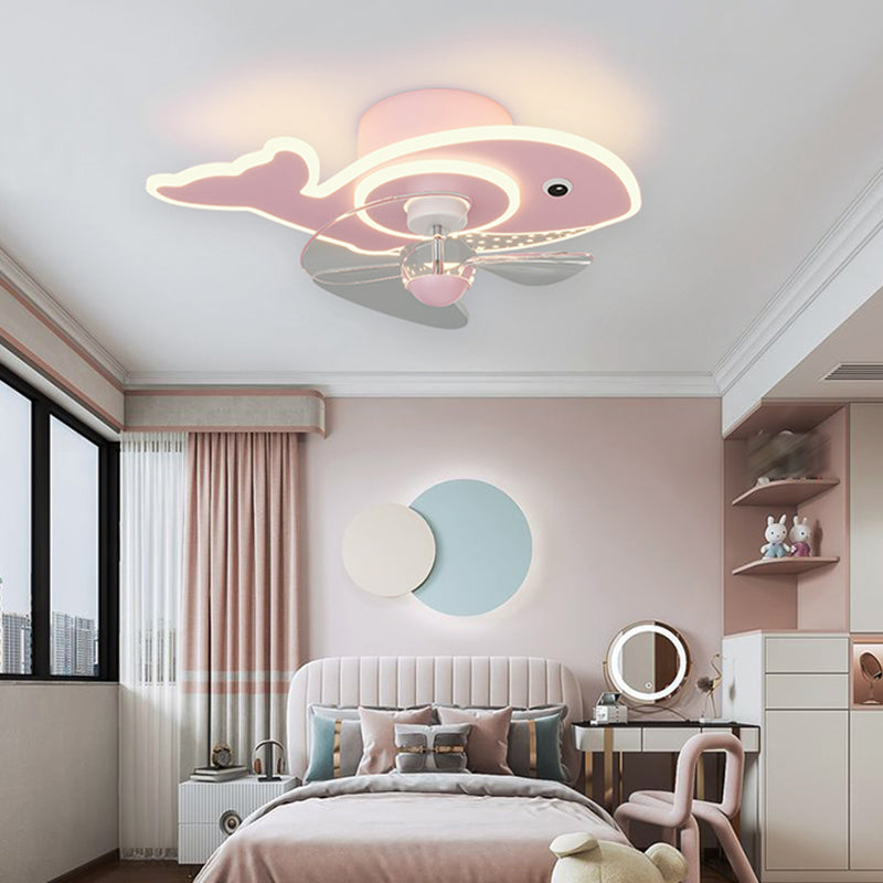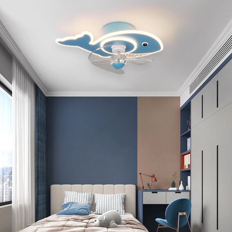 Children Ceiling Fan Light LED Ceiling Mount Lamp with Acrylic Shade for Bedroom