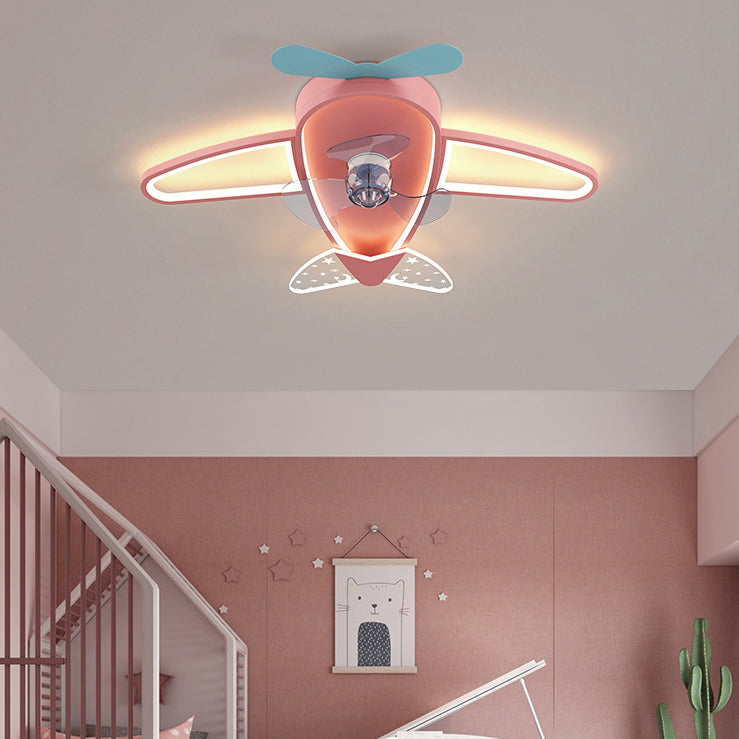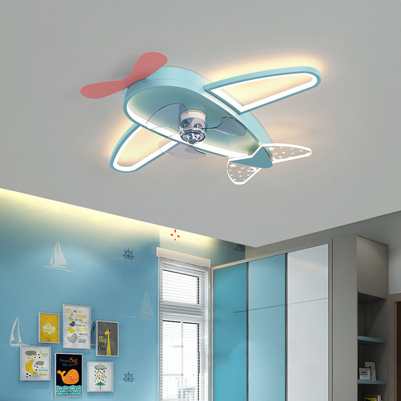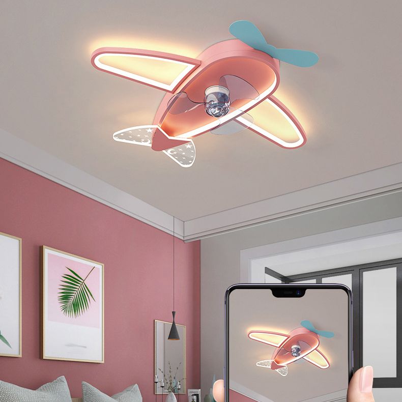 Children LED Ceiling Fan Light Simple Ceiling Mount Lamp with Acrylic Shade for Kid's Room