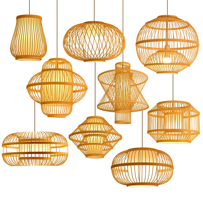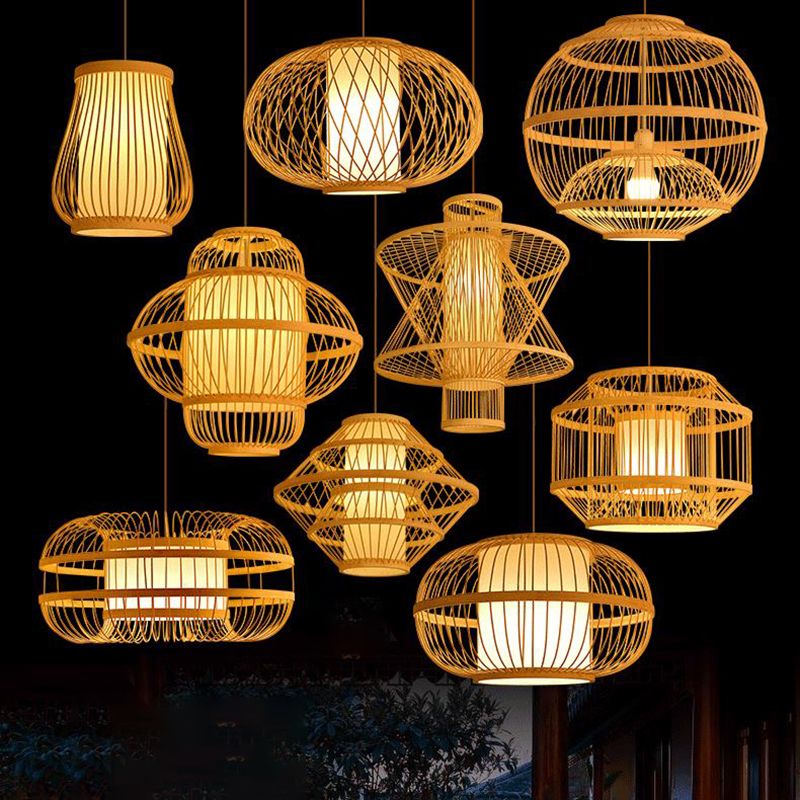 Chinese Style Bamboo Pendant Light Geometric Hanging Pendant for Restaurant