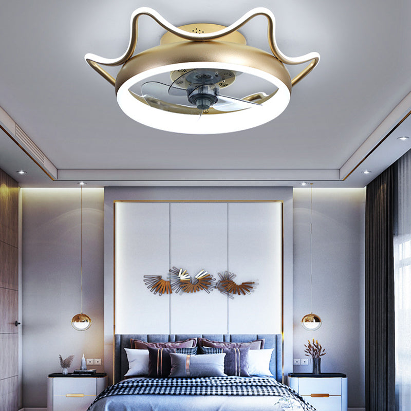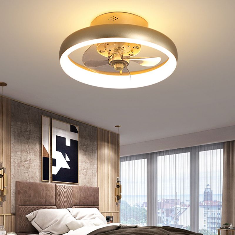 Circle Metal Ceiling Fan Lamp Modern Style LED Ceiling Light Fixture for Bedroom