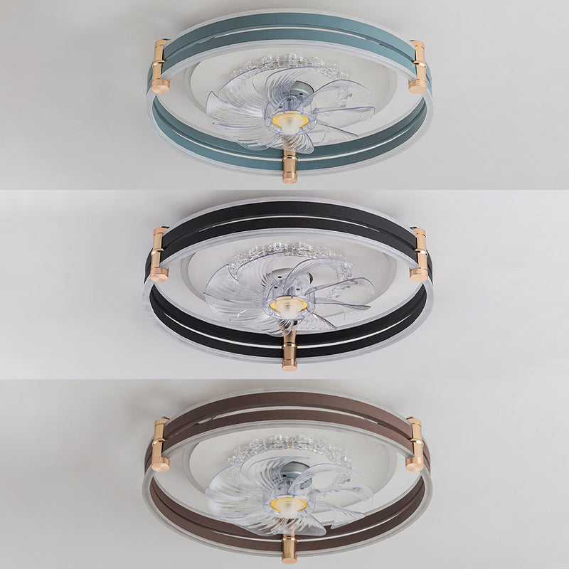 Circular LED Fan Lighting Fixture Macaron Metal Bedroom LED Semi Flush Mount Ceiling Light
