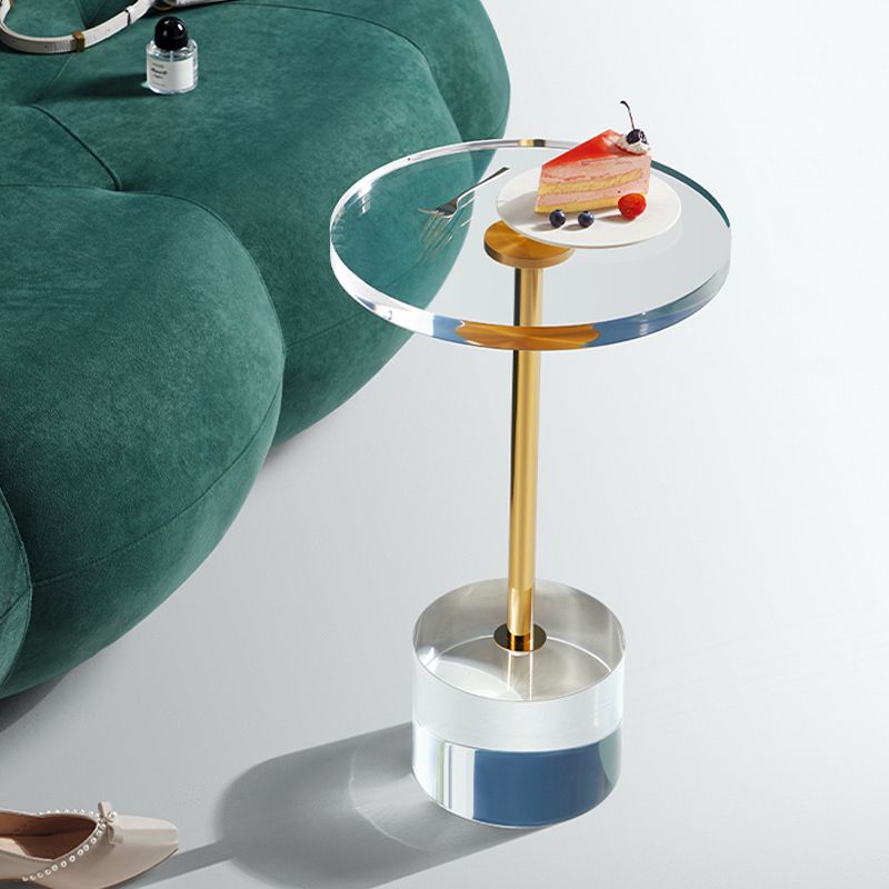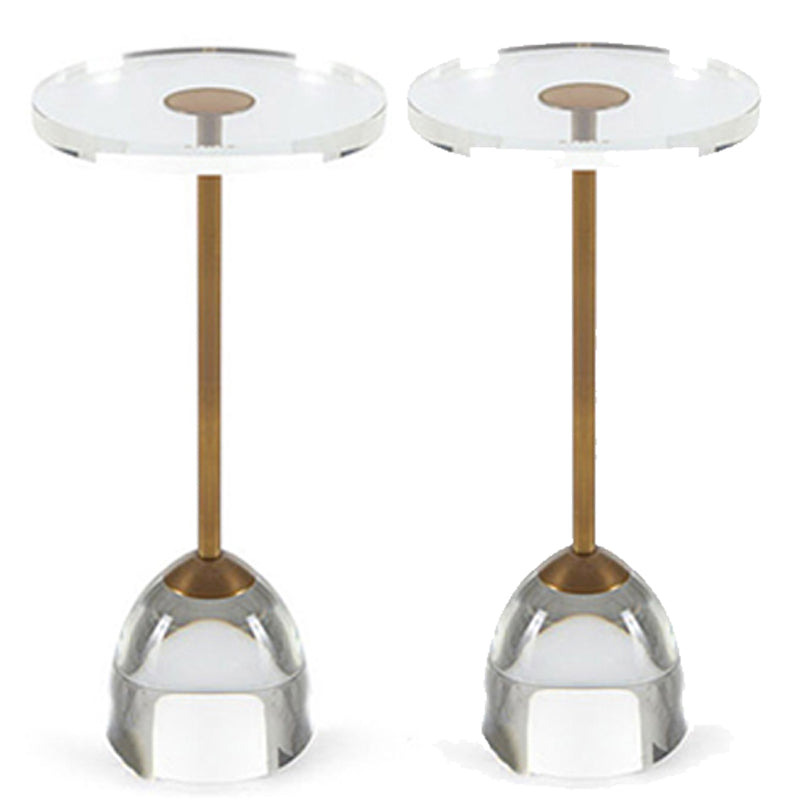 Clear Acrylic Round Side Table Set Glam Steel Pedestal End Table