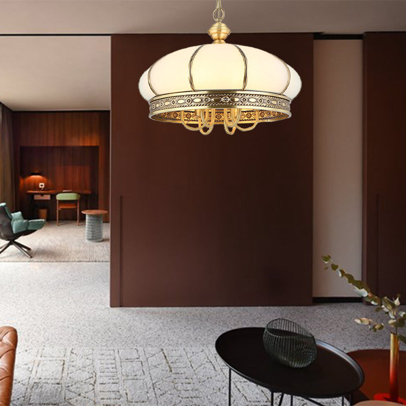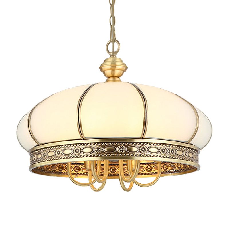 Colonial Oval Hanging Pendant 6 Heads Frosted White Glass Chandelier Lighting Fixture in Gold