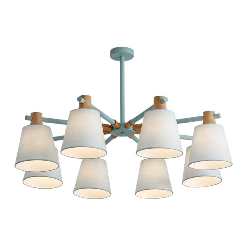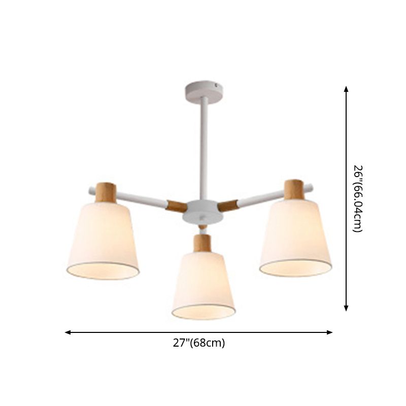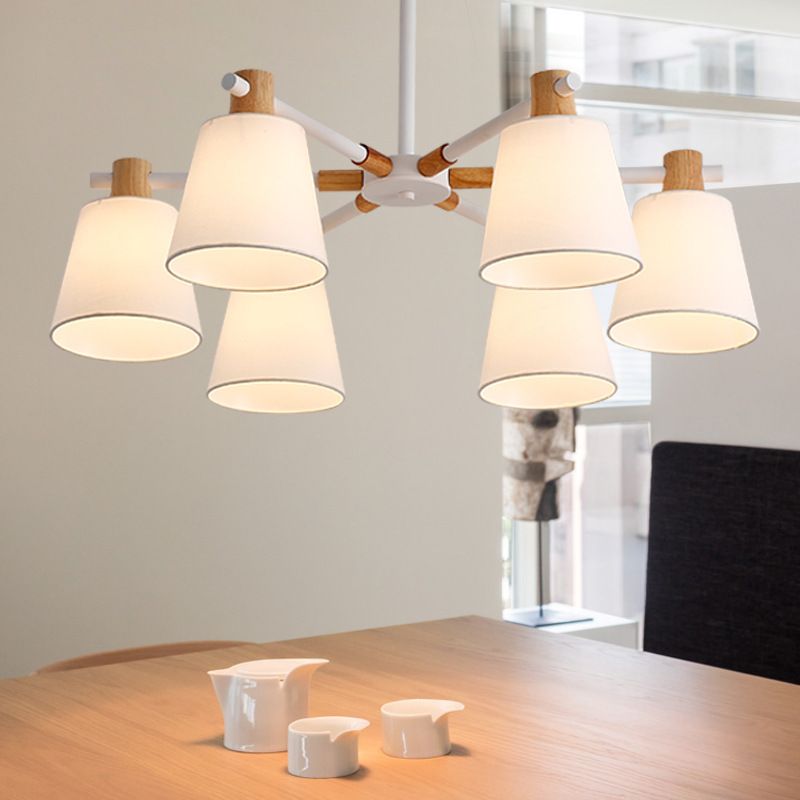 Cone Fabric Lampshade Chandelier Light Wooden Modern Simplicity Hanging Light for Dining Room Bedroom