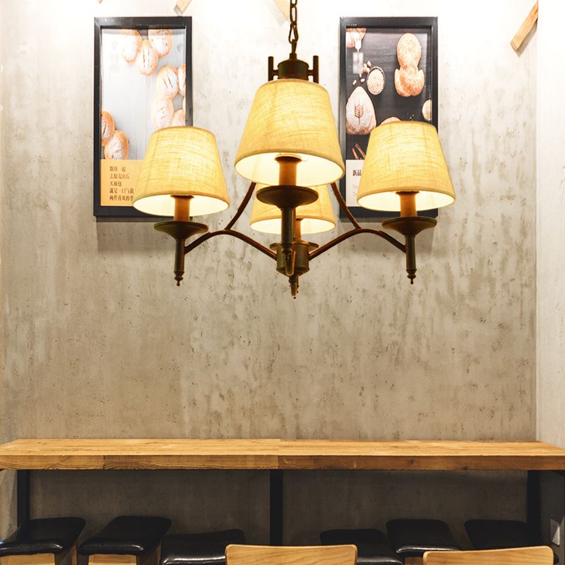 Conical Restaurant Chandelier Light Lodge Fabric 4/6/8 Heads Black Down Lighting Pendant