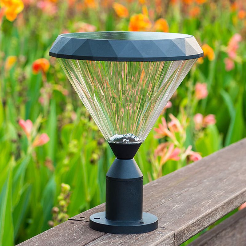 Conical Shade Courtyard Pier Mount Light Retro Acrylic 1 Bulb Black Post Lighting