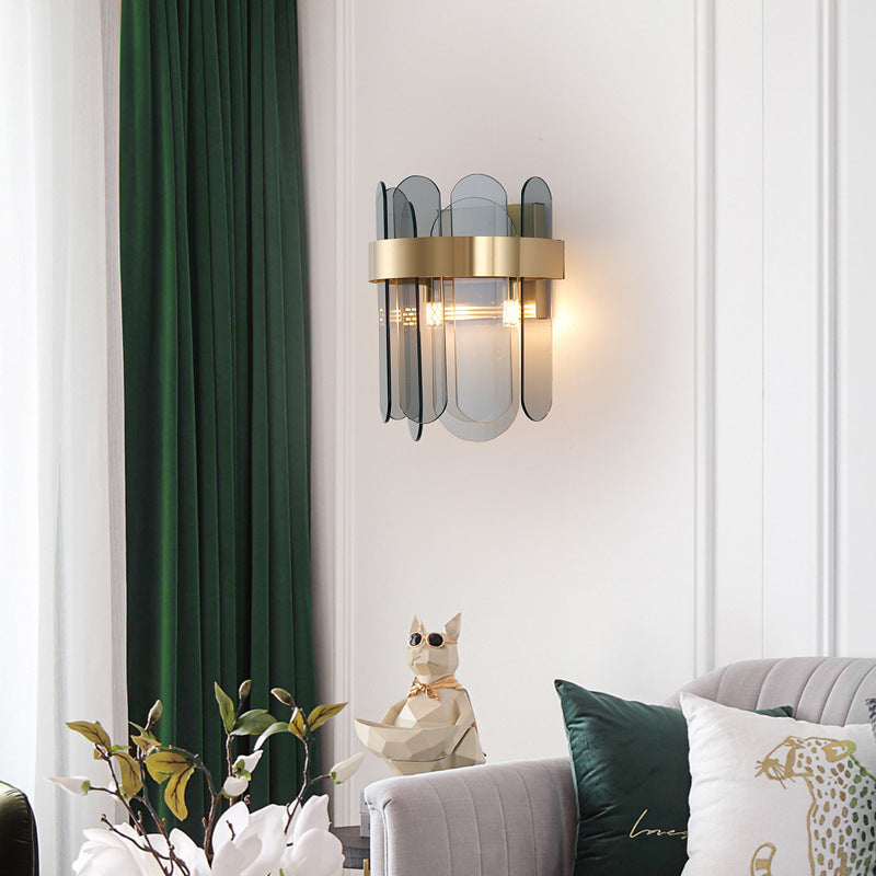 Contemporary 2-Light Brass Bathroom Vanity Light Glass Shaded Bath Bar