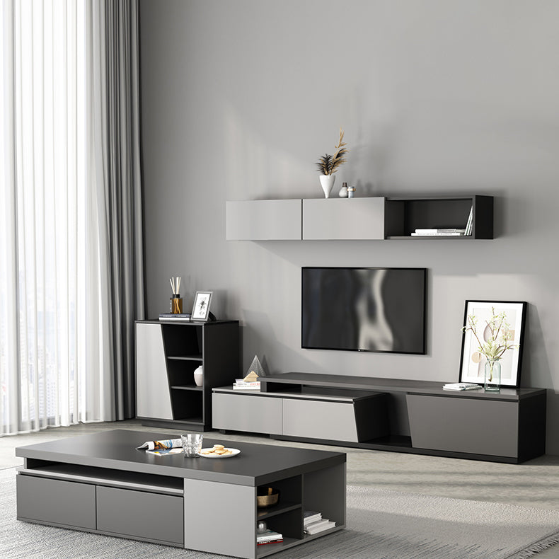 Contemporary 70" / 90" Corner TV Stand , Engineered Wood TV Cabinet in Grey