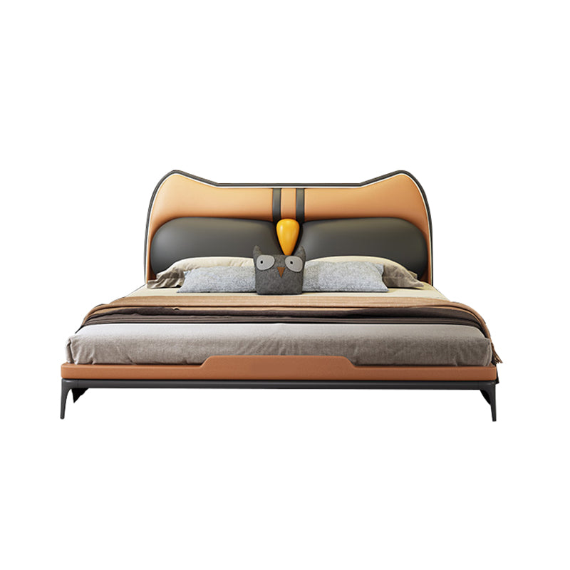 Contemporary Animal Theme Bed with Upholstered Headboard in Leather