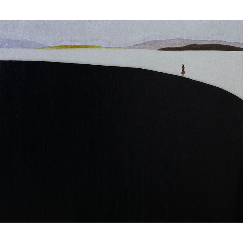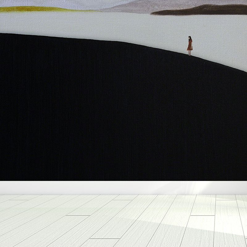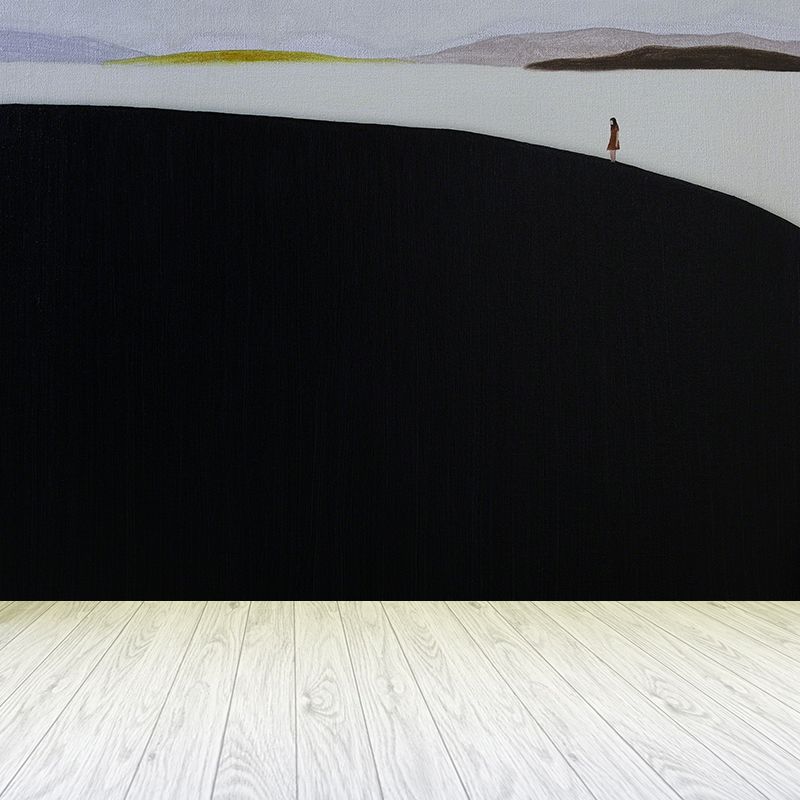 Contemporary Art Adults Mural Wallpaper Hills and Lake Painting Black Wall Covering