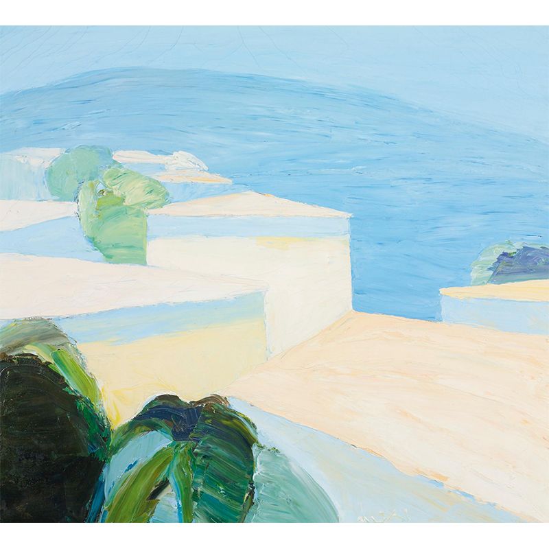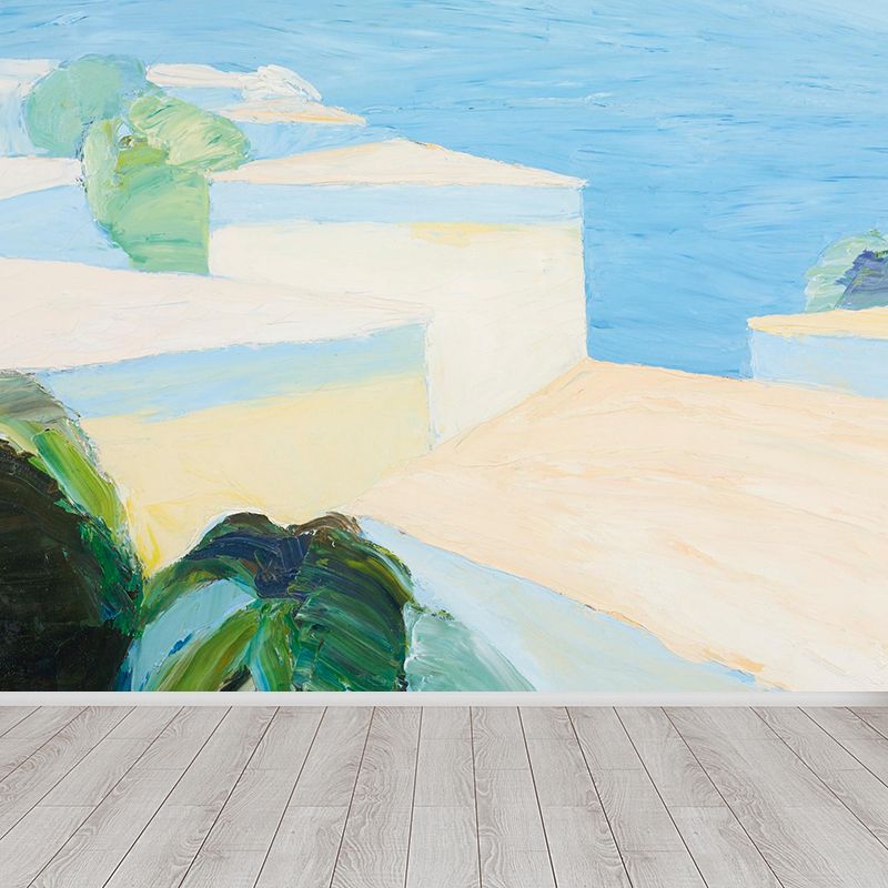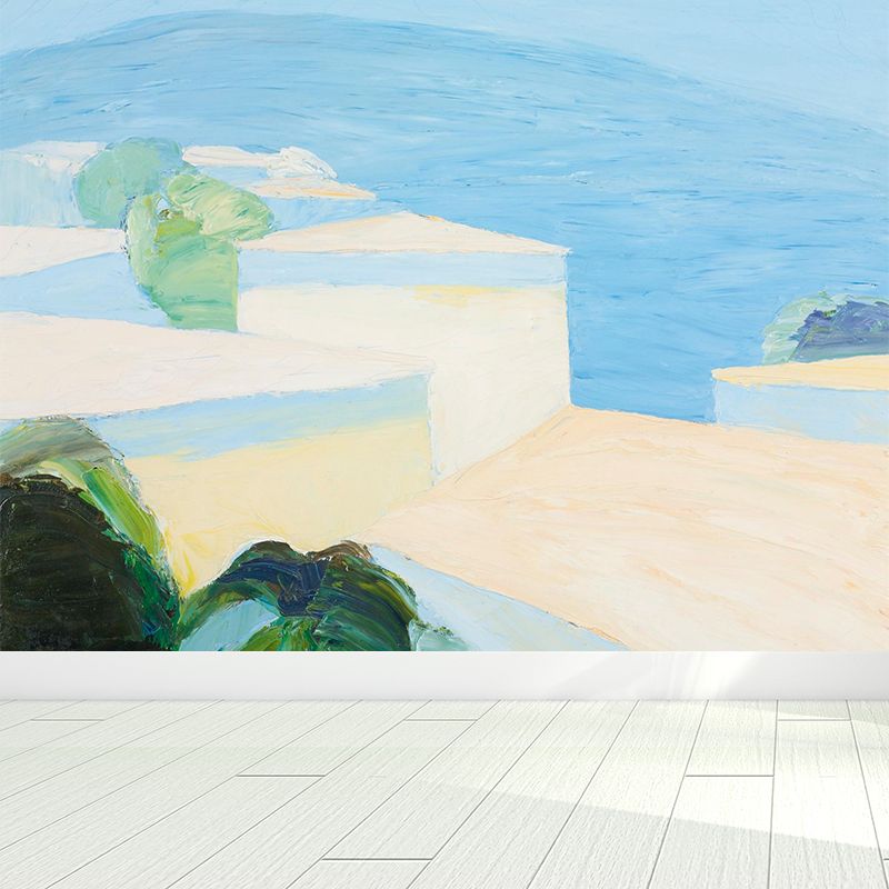 Contemporary Art Mountains Wall Mural Blue Decorative Wall Covering for Living Room
