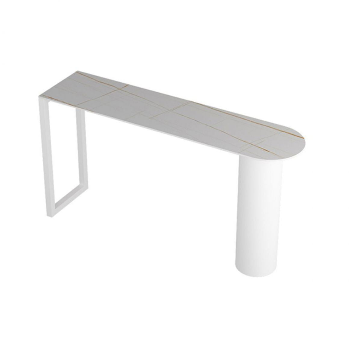 Contemporary Bar Table Stone Pub Table with Iron Base for Dining Room