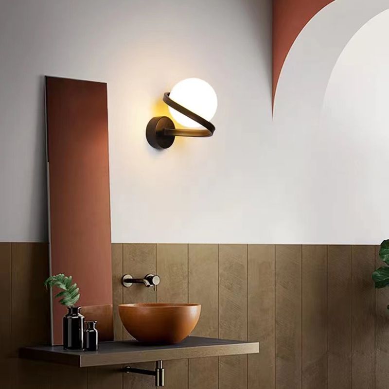 Contemporary Bath Vanity Lighting Globe Shaded Black/Golden Vanity Light for Bathroom