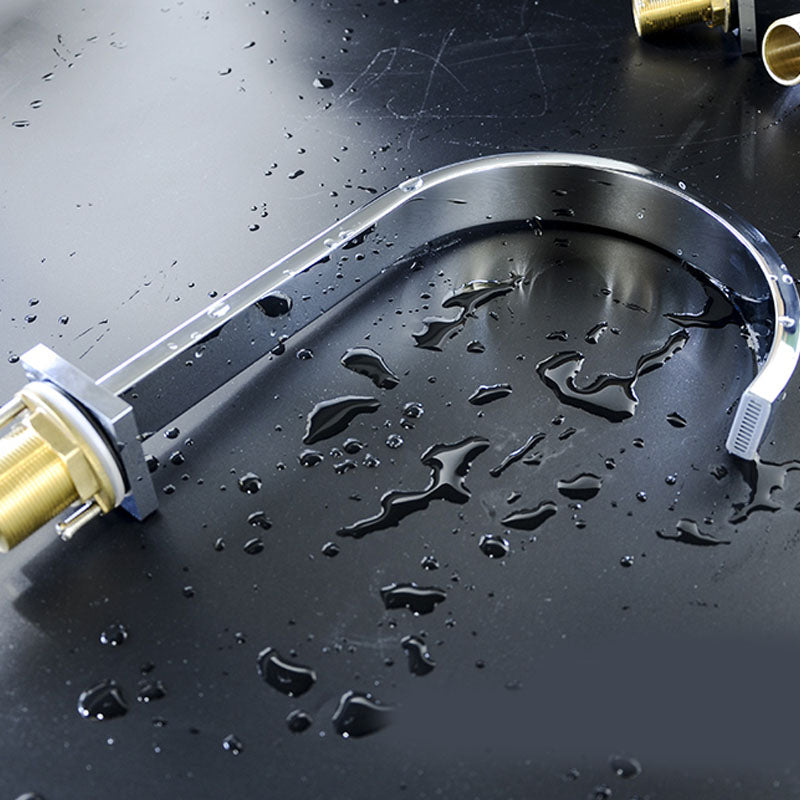 Contemporary Bathroom Faucet Deck Mounted Copper Low Arc Roman Tub Faucet Trim