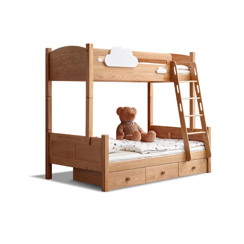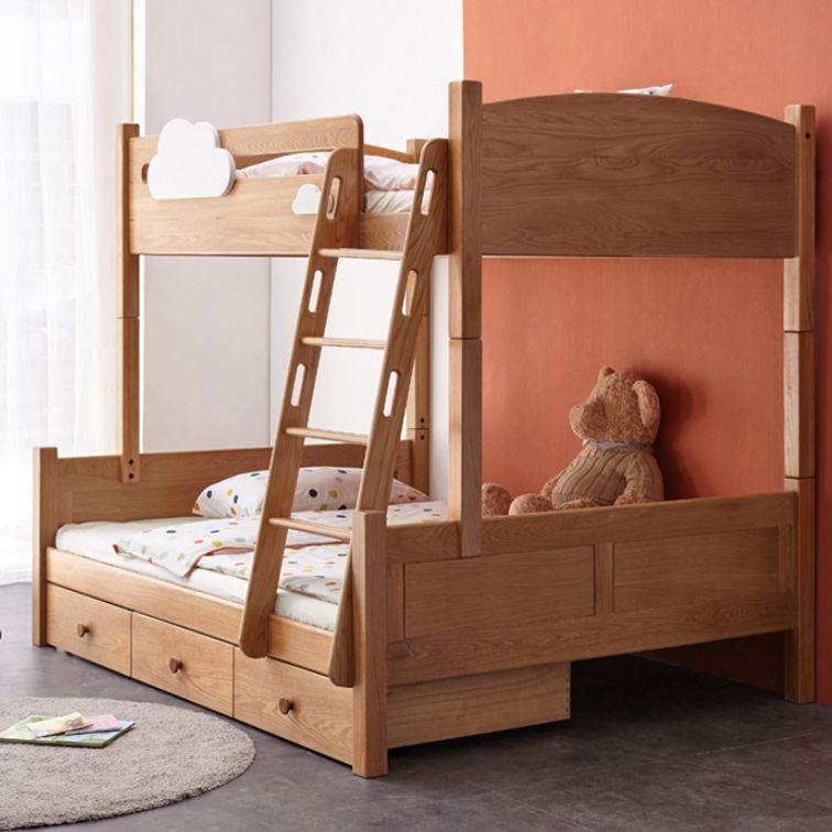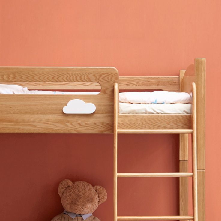 Contemporary Bunk Bed Solid Wood Natural with Guardrail No Theme Panel Headboard