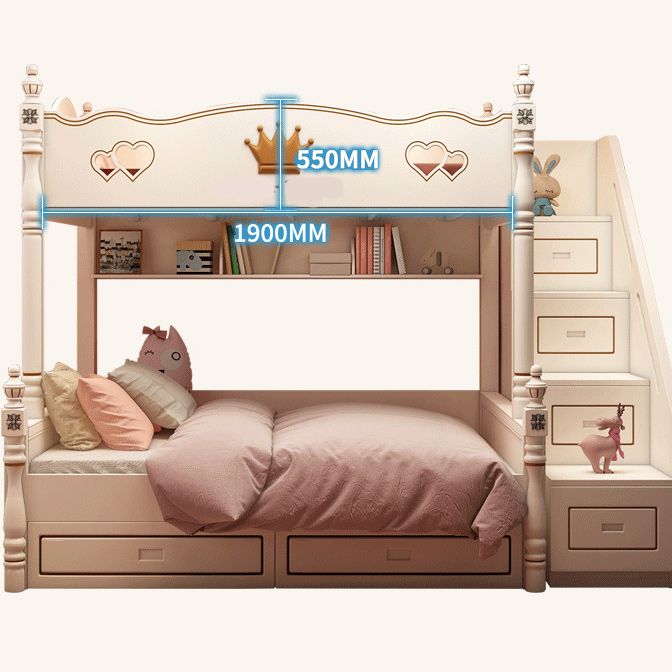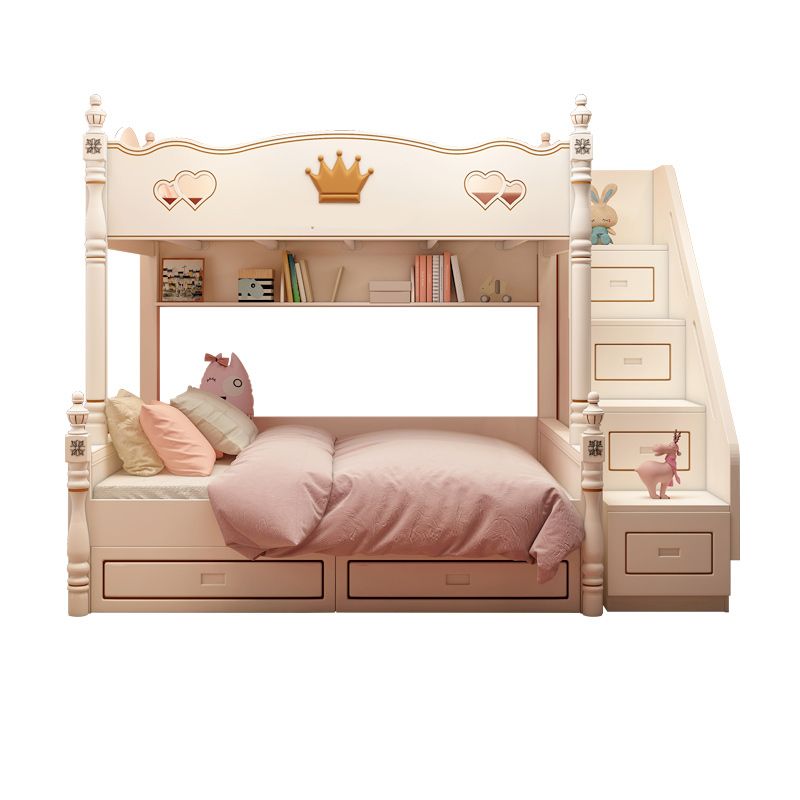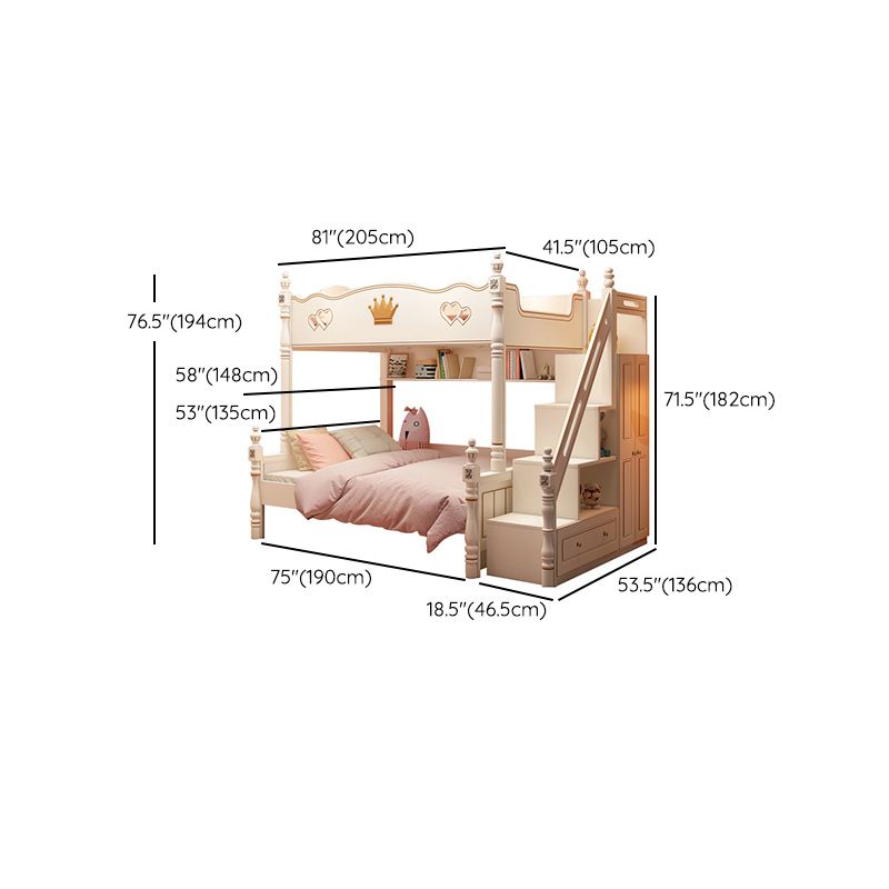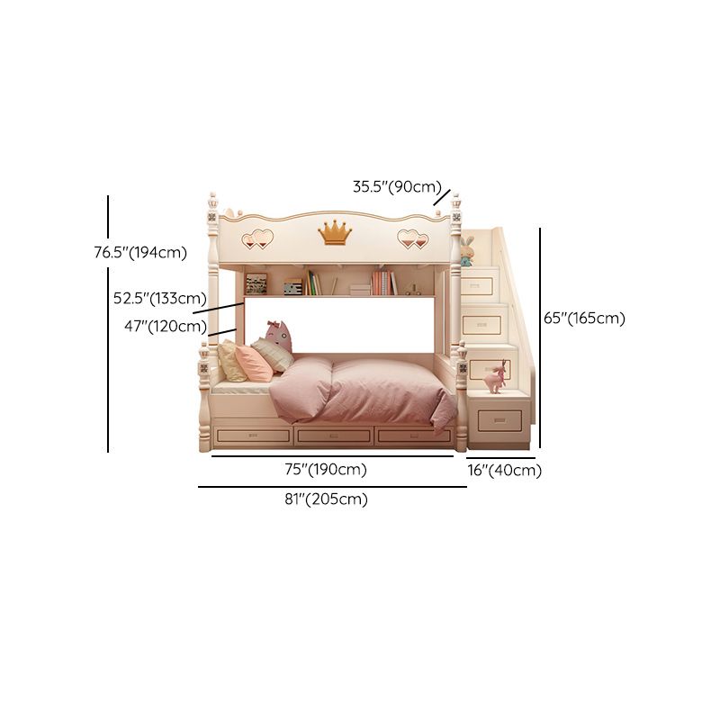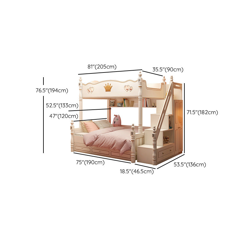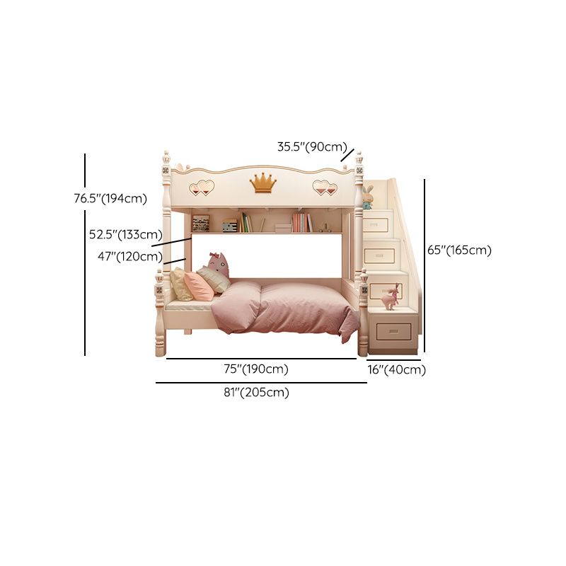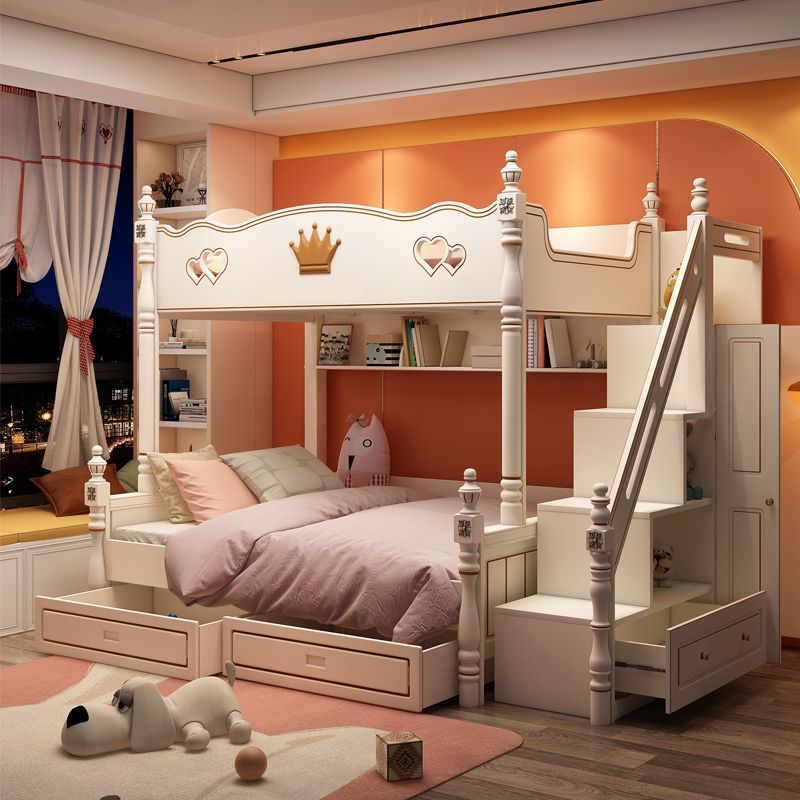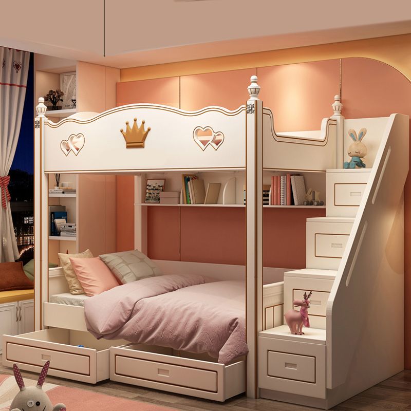 Contemporary Bunk Bed Solid Wood White Princess with Guardrail Headboard