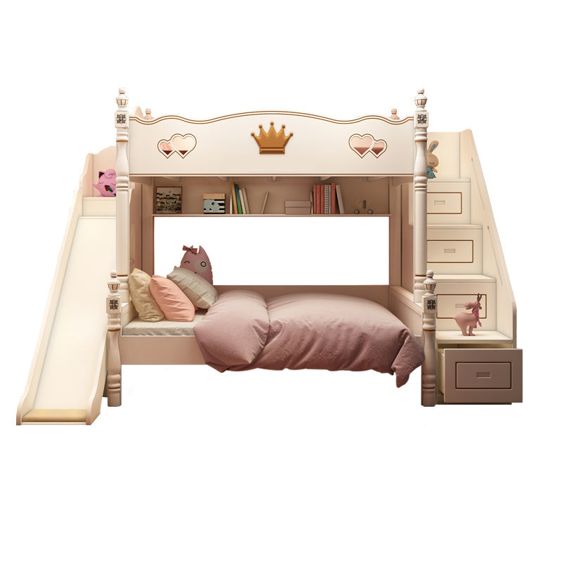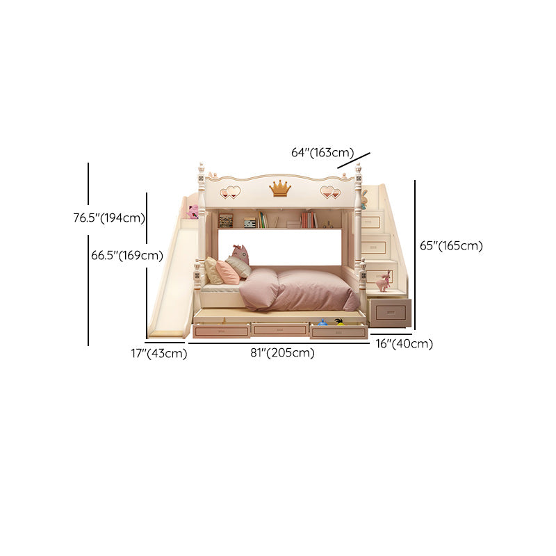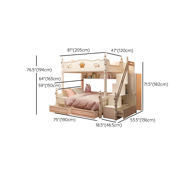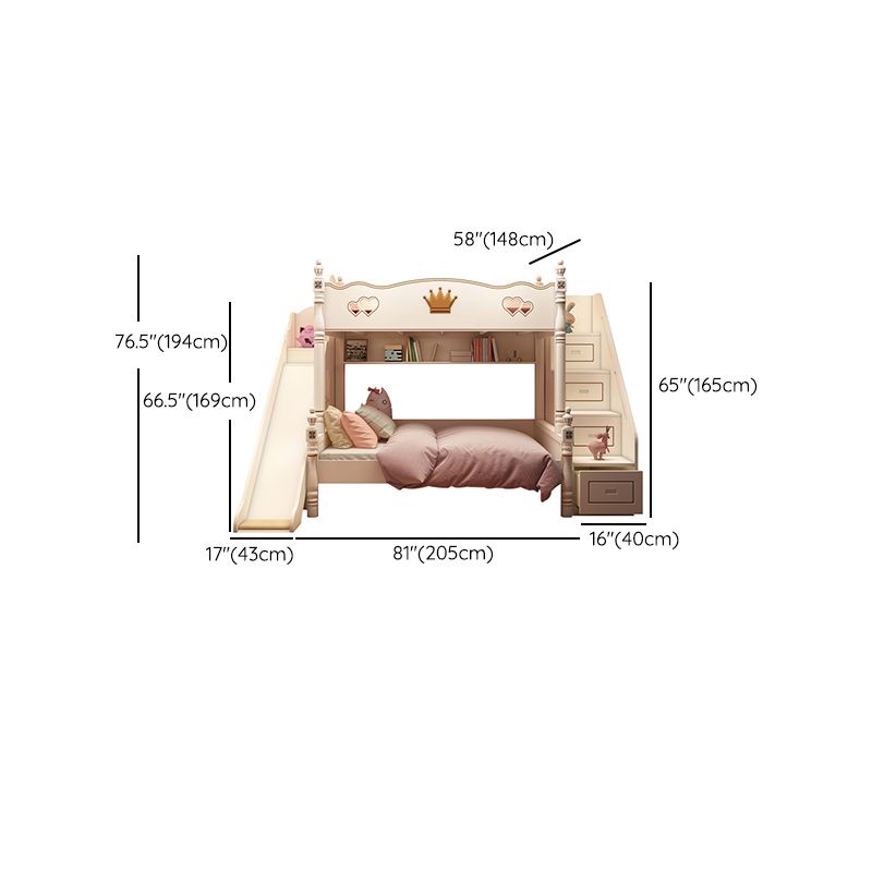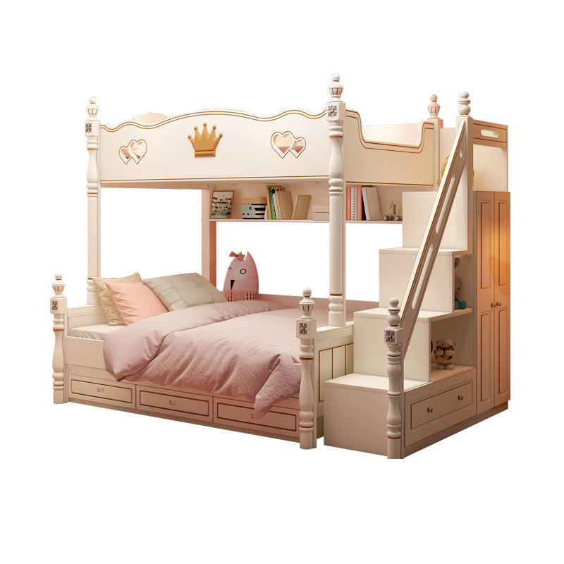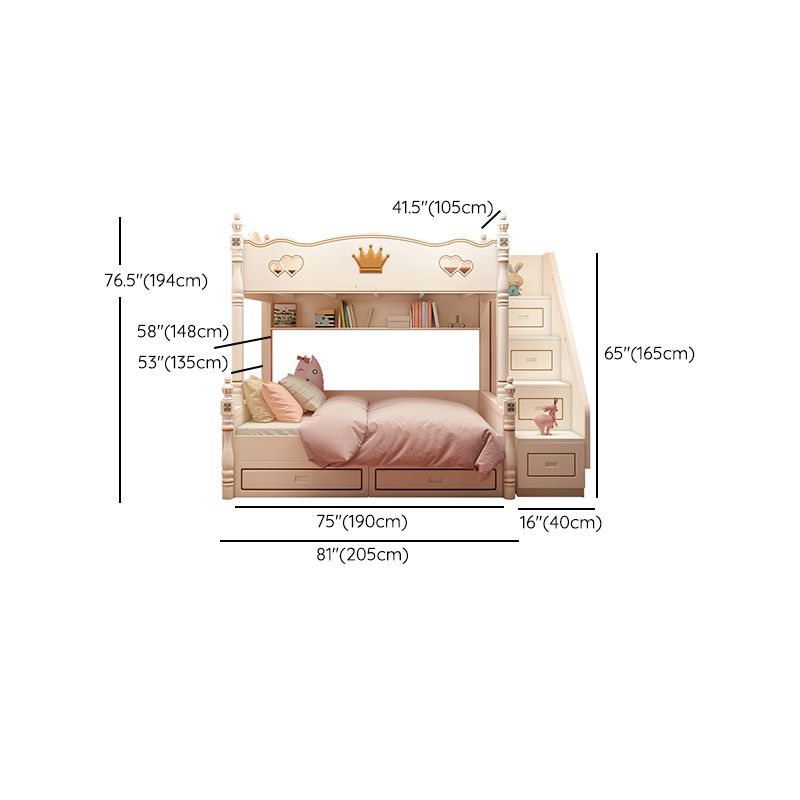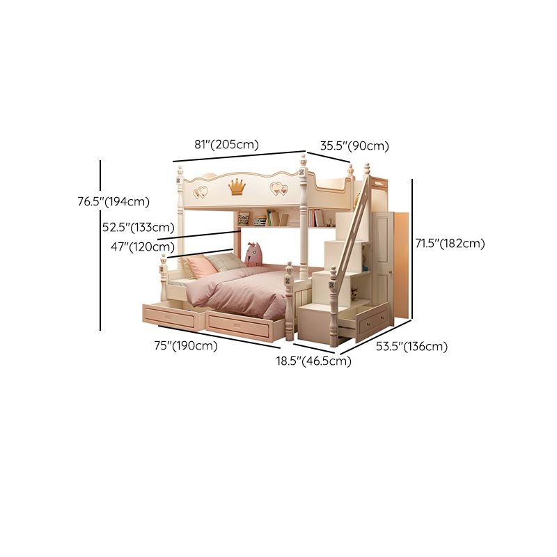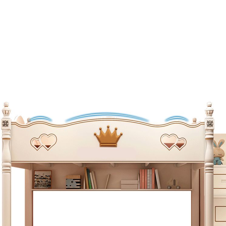 Contemporary Bunk Bed Solid Wood White Princess with Guardrail Headboard