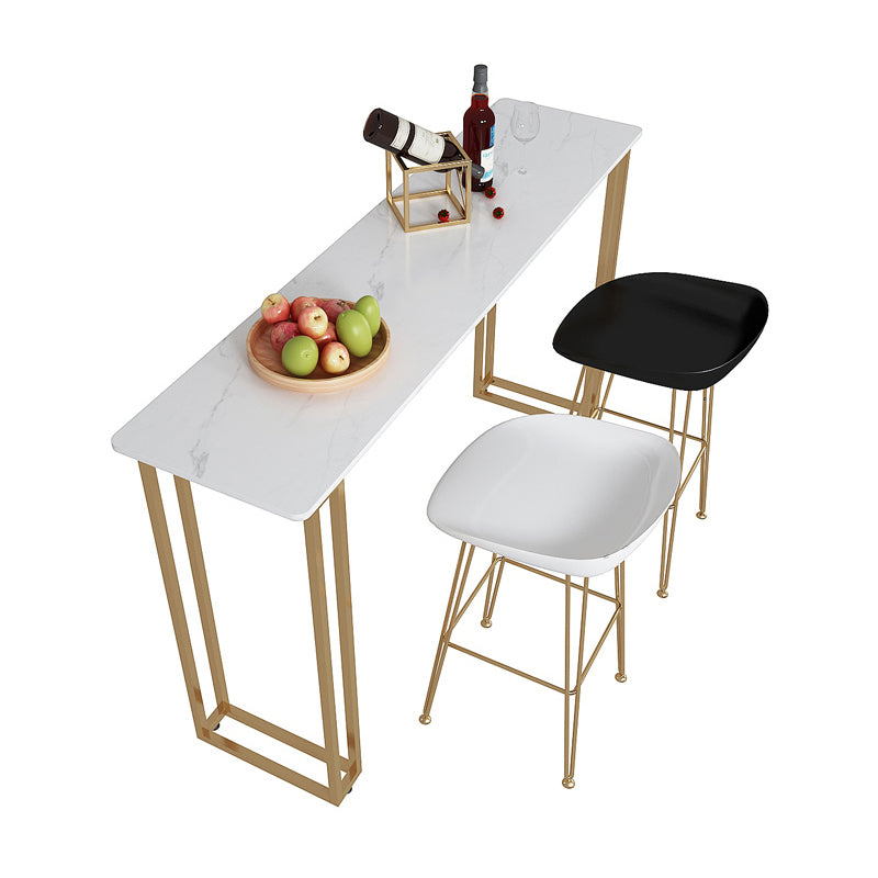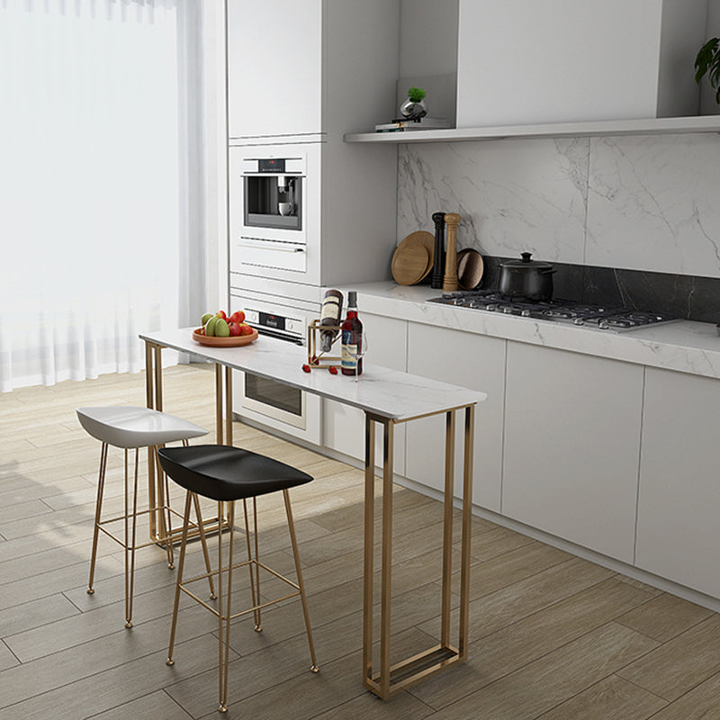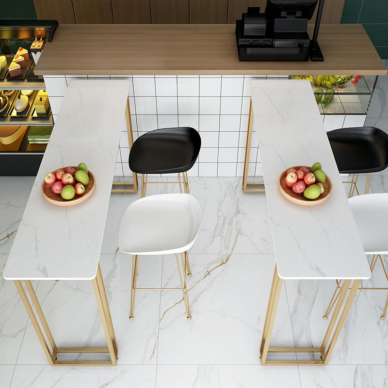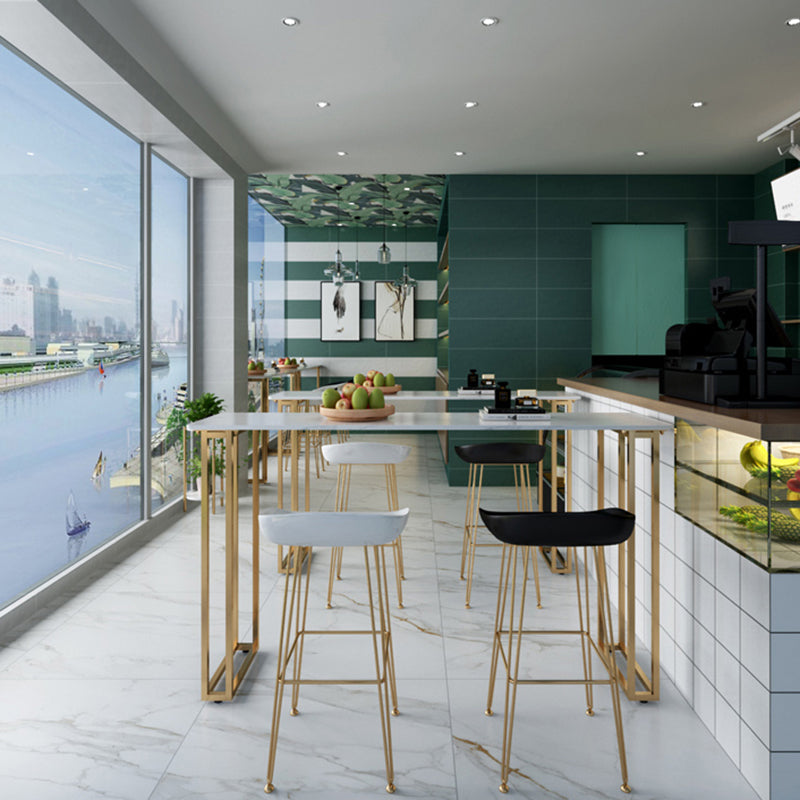 Contemporary Gold and White Counter Wine Table Marble Fixed Table Indoor Patio Bar Table