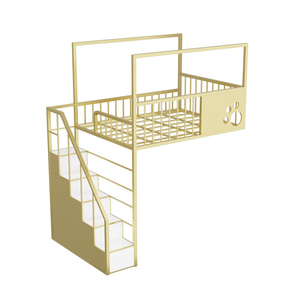 Contemporary Iron Bunk Bed with Guardrail and Ladder/Stairway