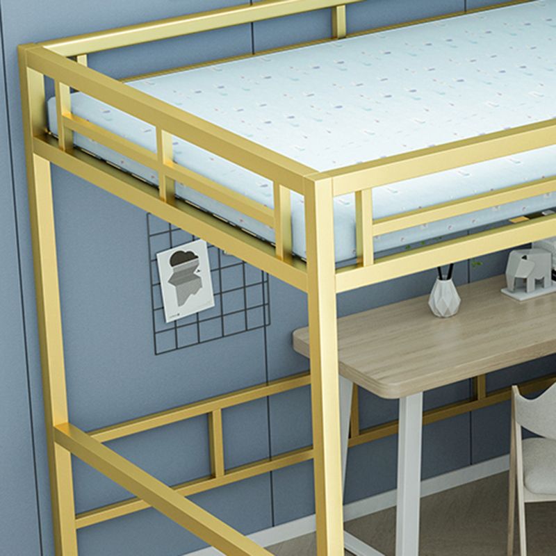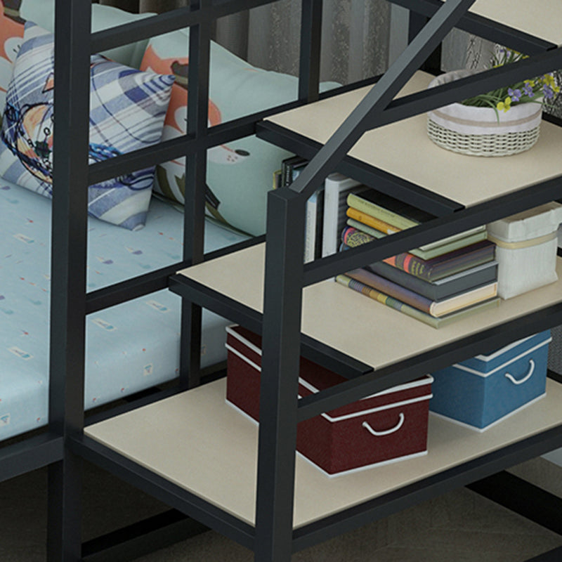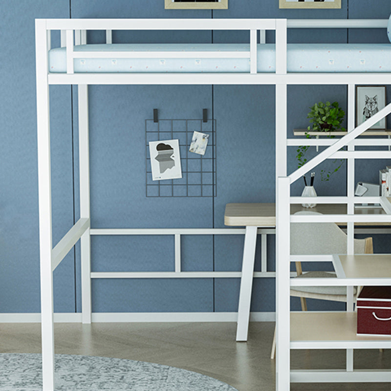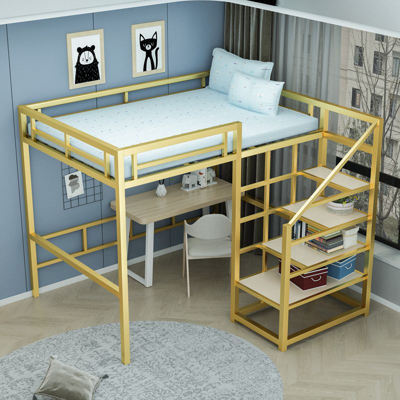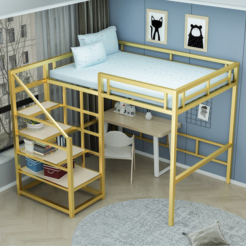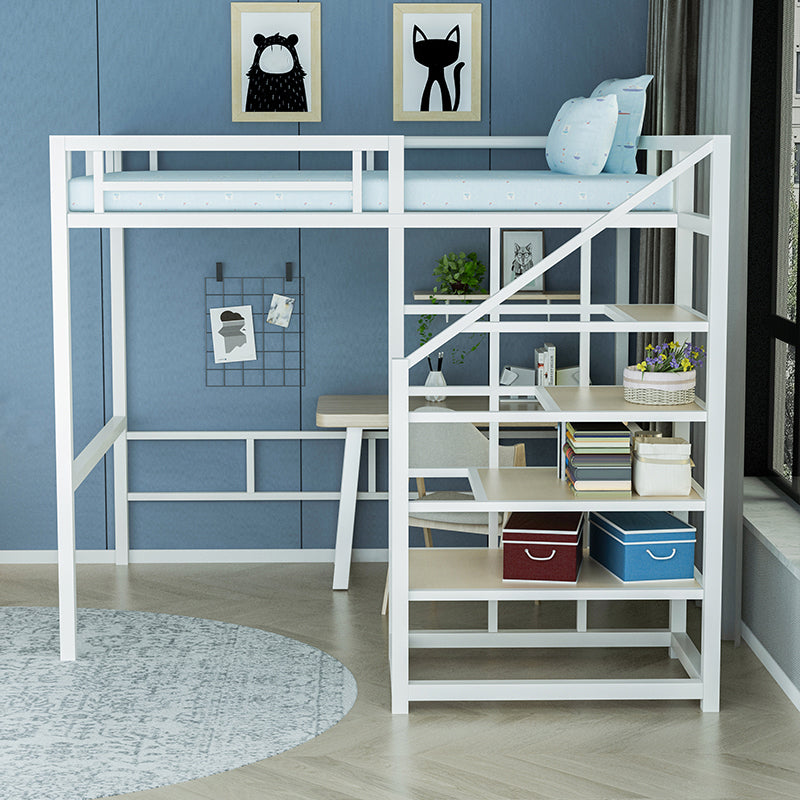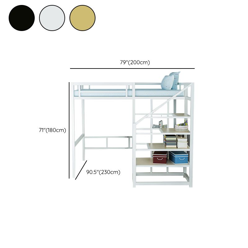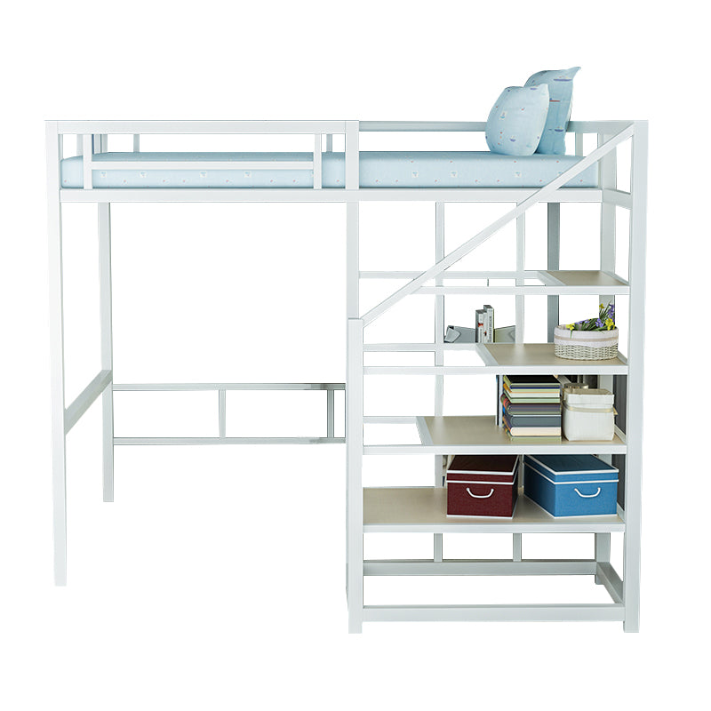 Contemporary Iron Frame Loft Bed with 3 Shelves and Staircase