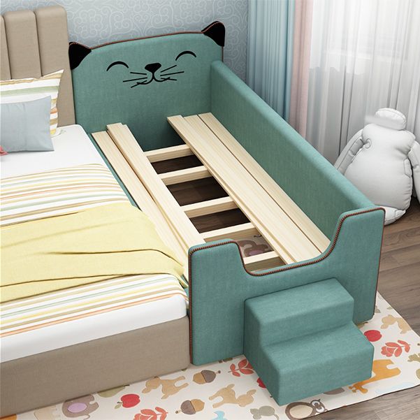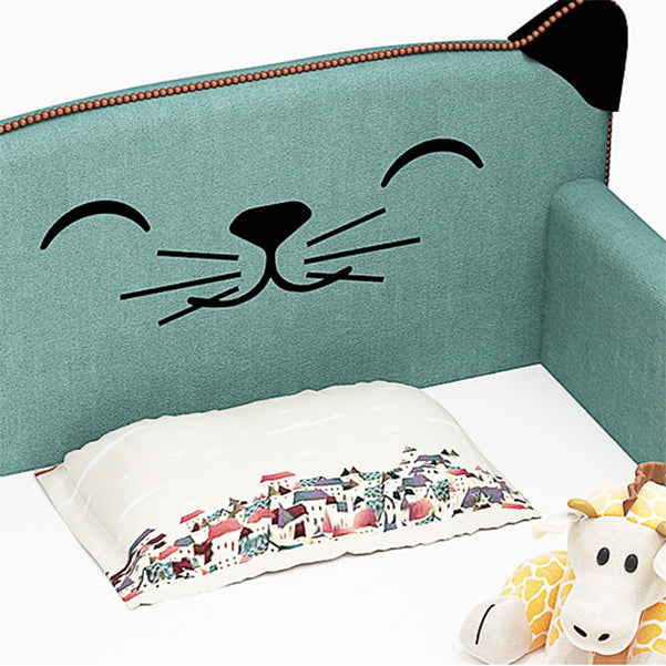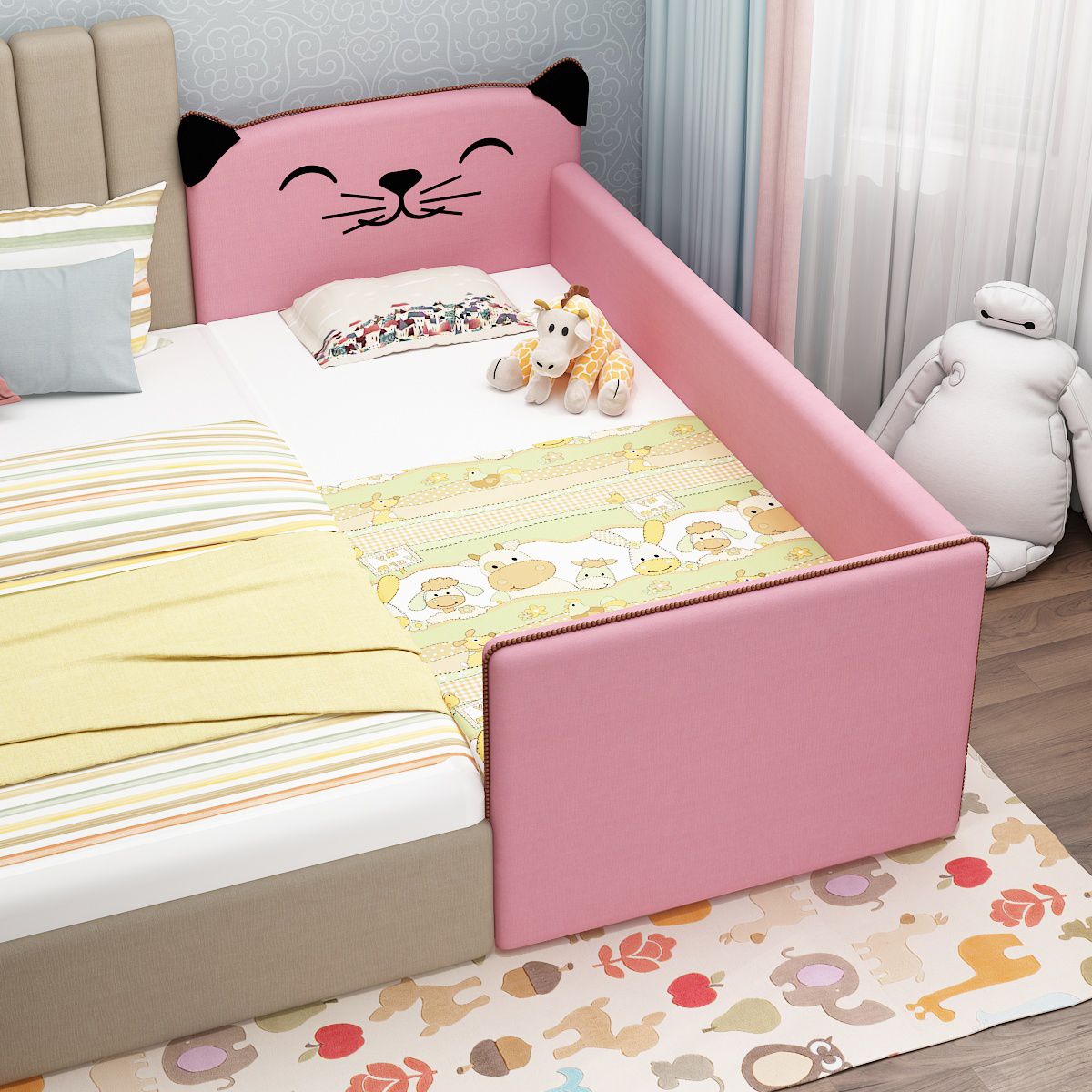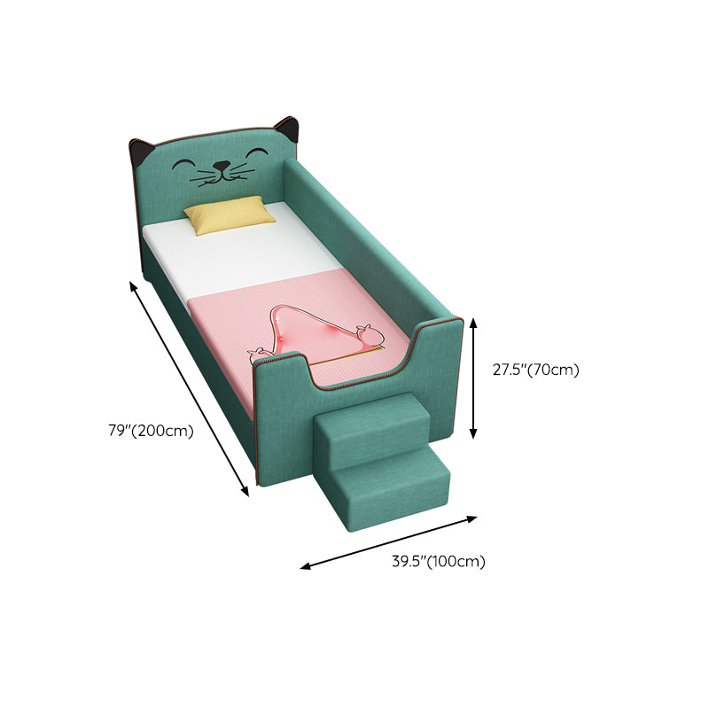 Contemporary Kids Bed Solid Wood Upholstered Headboard with Guardrail Animals