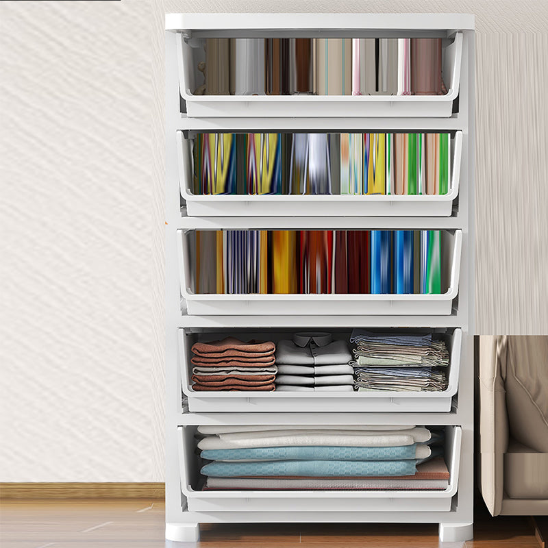Contemporary Kids Nightstand Plastic Nursery Dresser with 5 Drawers