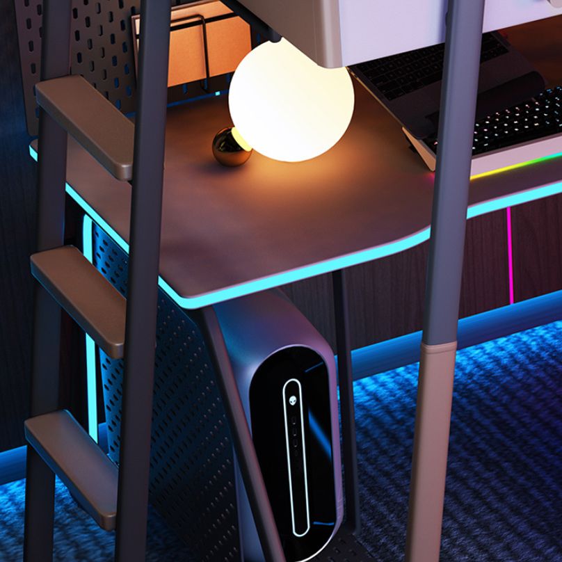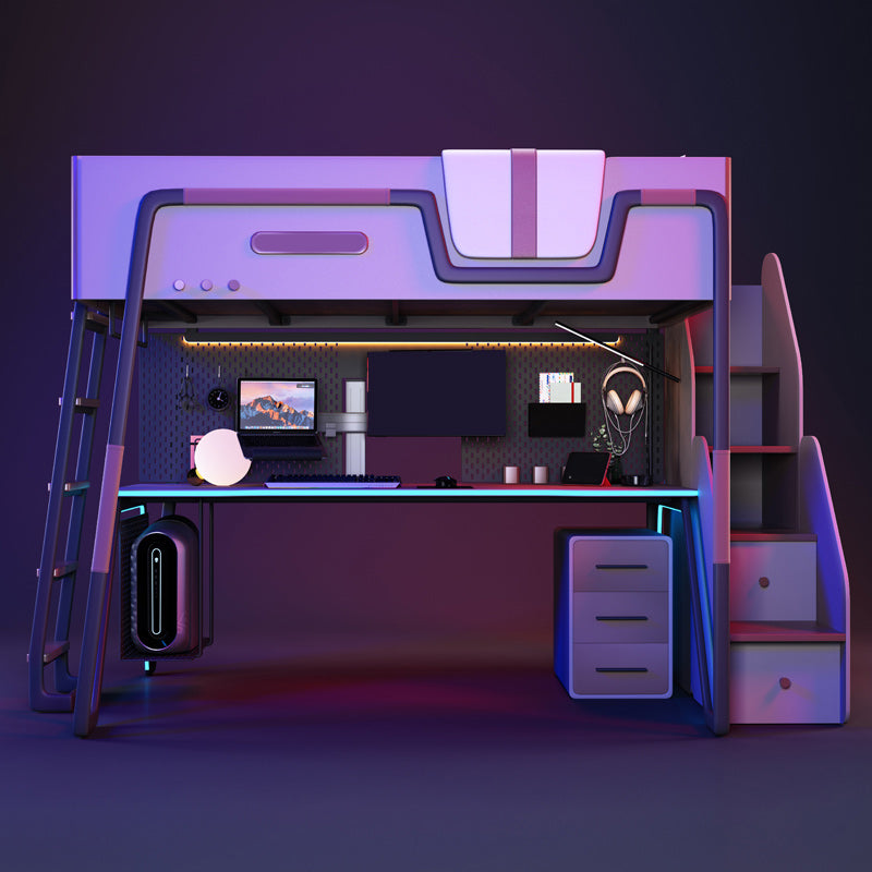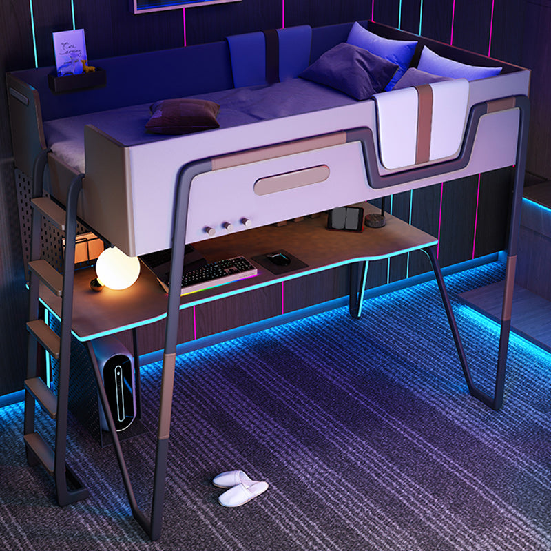 Contemporary Loft Bed Metal with Guardrail Storage No Theme Panel Headboard