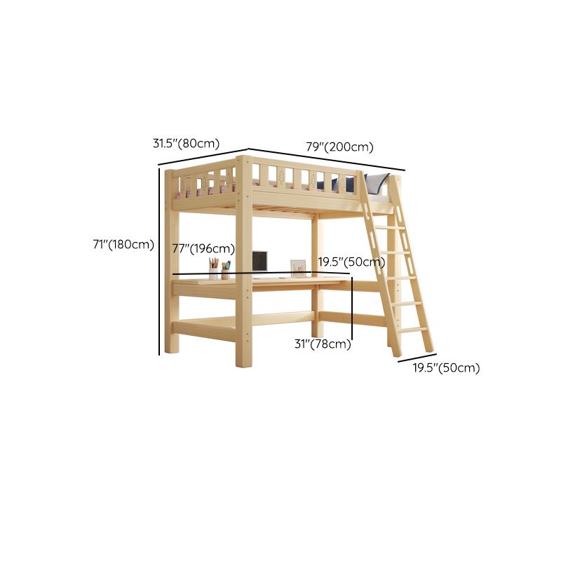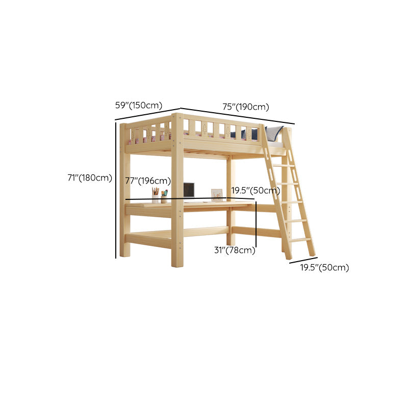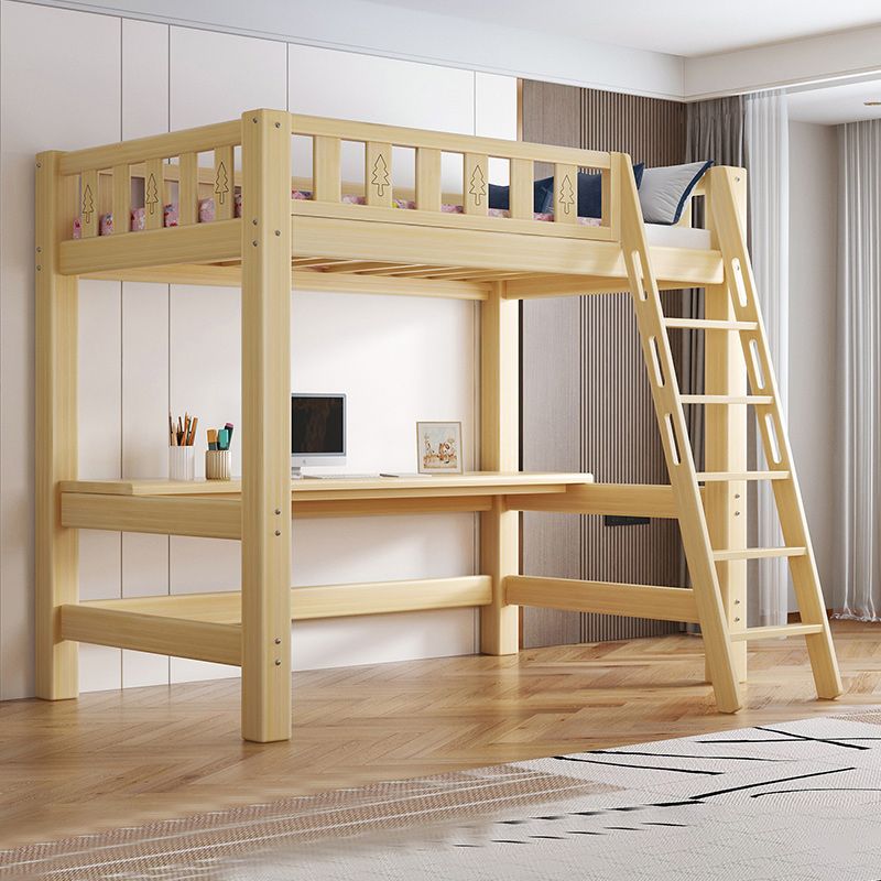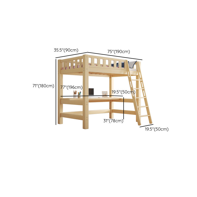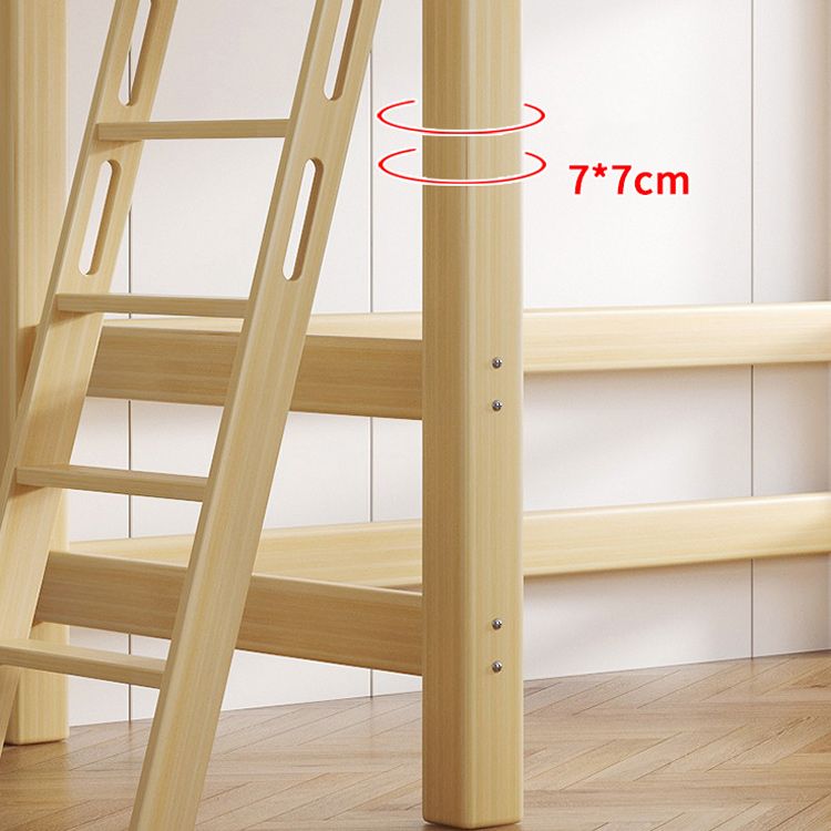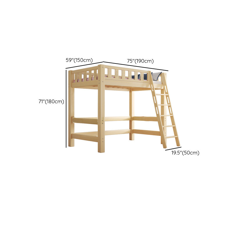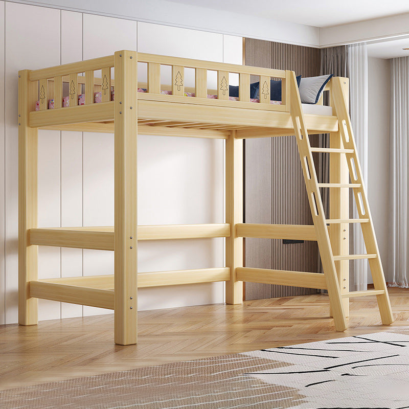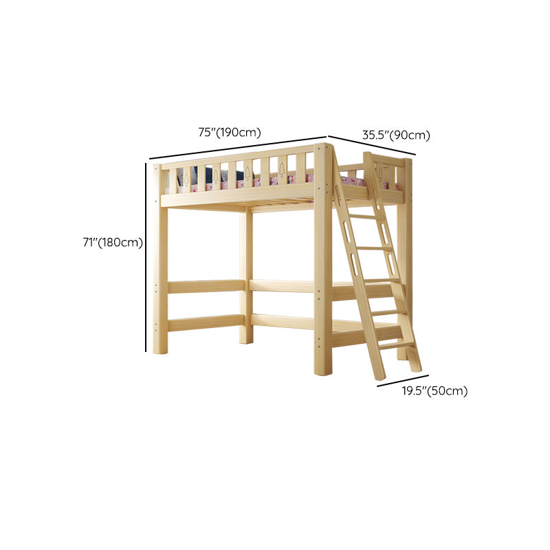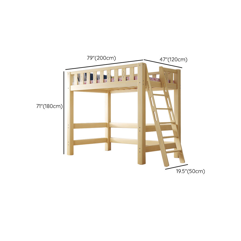 Contemporary Loft Bed Natural Solid Wood Kids Bed with Guardrail