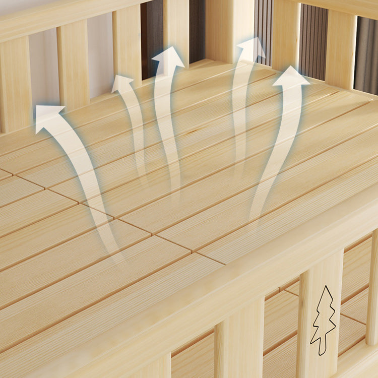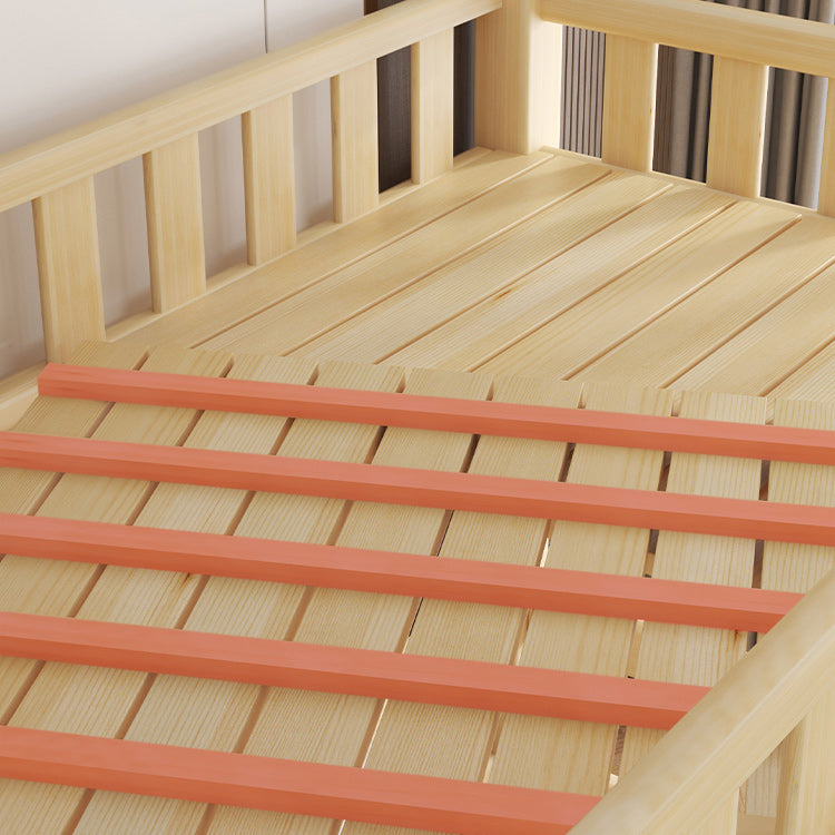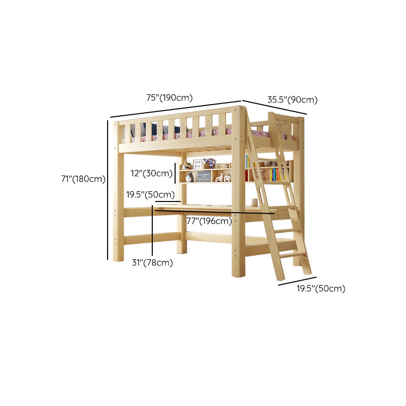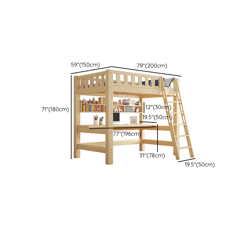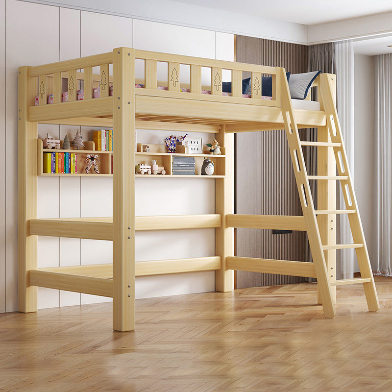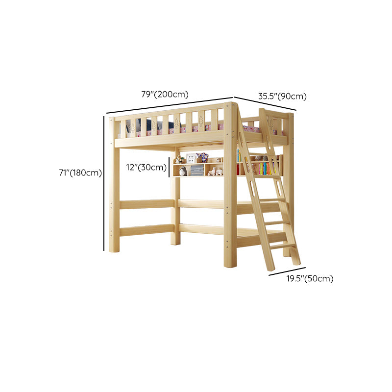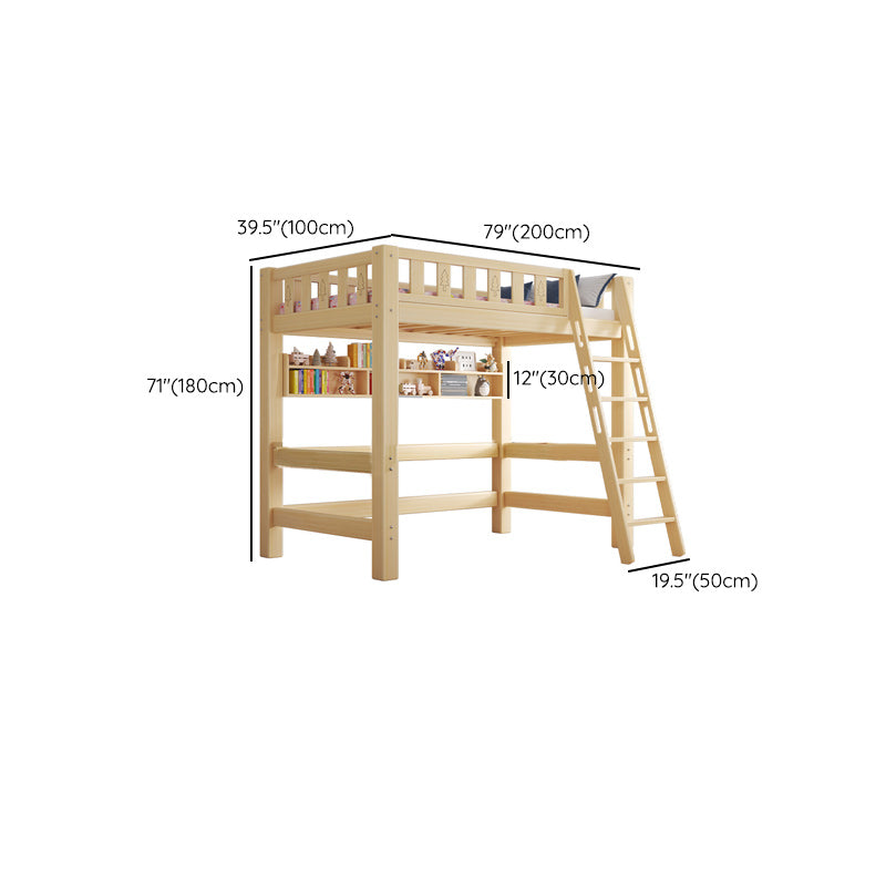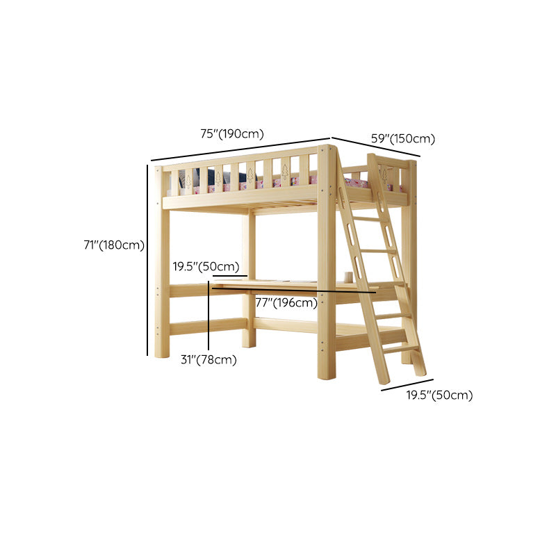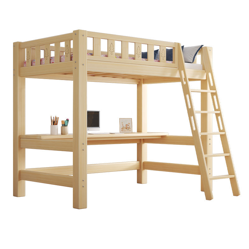 Contemporary Loft Bed Natural Solid Wood Kids Bed with Guardrail
