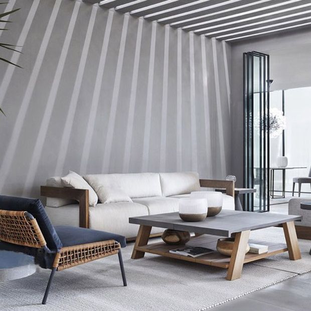 Contemporary Patio Table Stone Gray Coffee Table with Storage