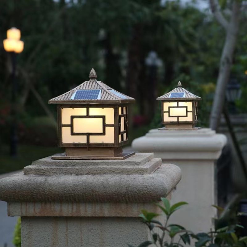 Contemporary Pillar Lamp Minimalist LED Solar Light for Backyard