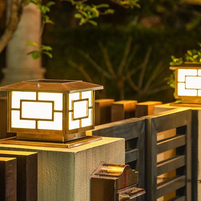 Contemporary Pillar Lamp Minimalist Solar Lamp with Acrylic Shade for Backyard